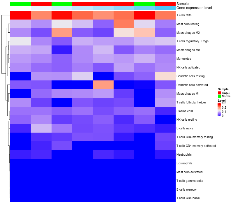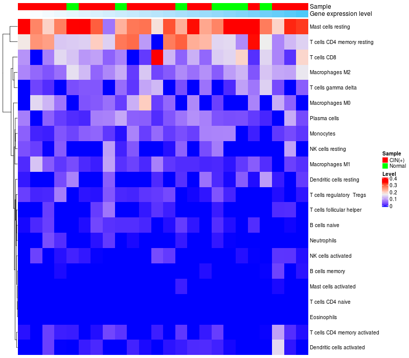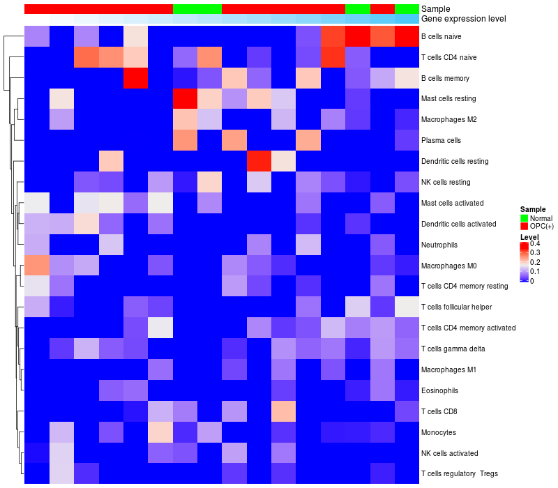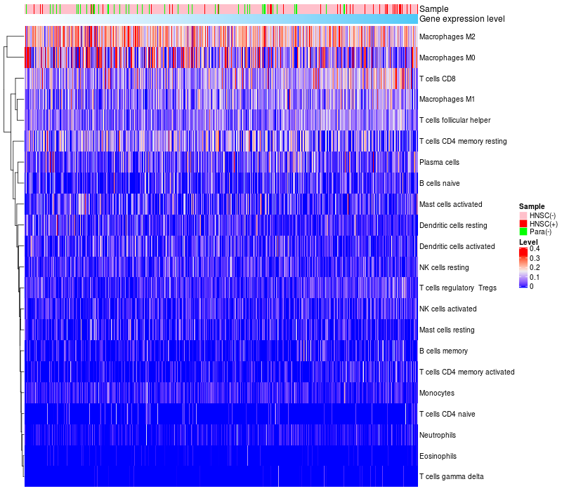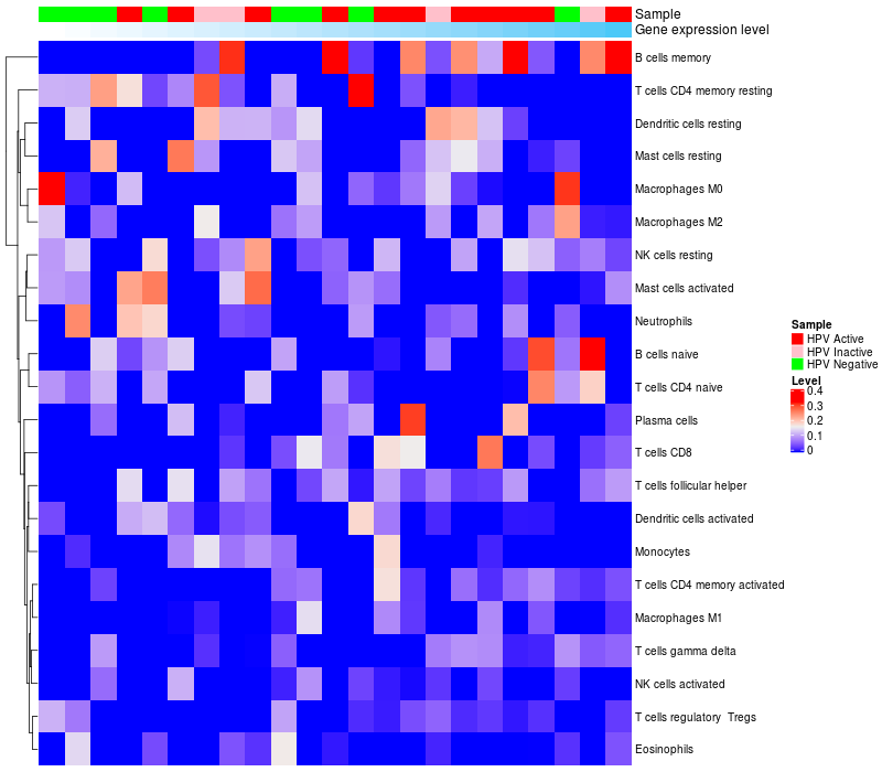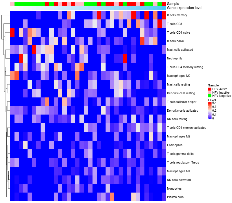 Lollipop of ASMT expression and immune infiltrating cell level correlation result in HPV+ samples