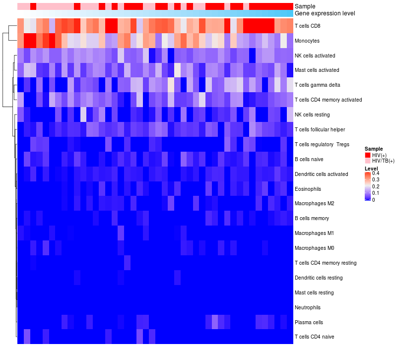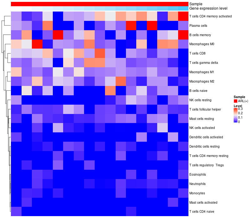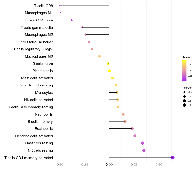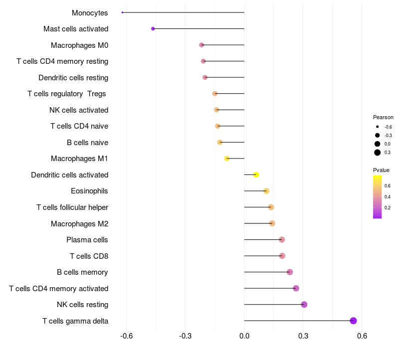 Relationship between gene expression and immune infiltrating cell level