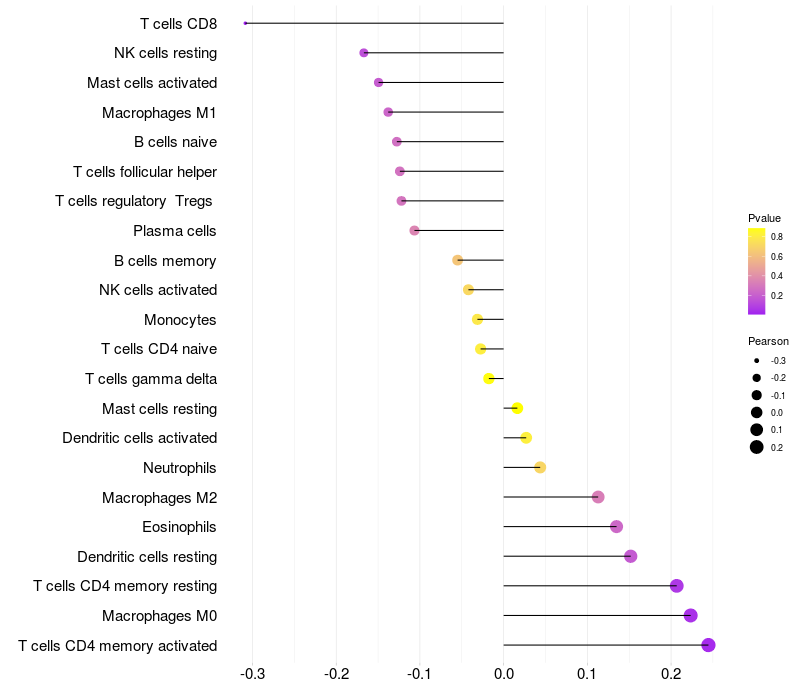 Lollipop of ATP2C1 expression and immune infiltrating cell level correlation result in HBV+ samples
