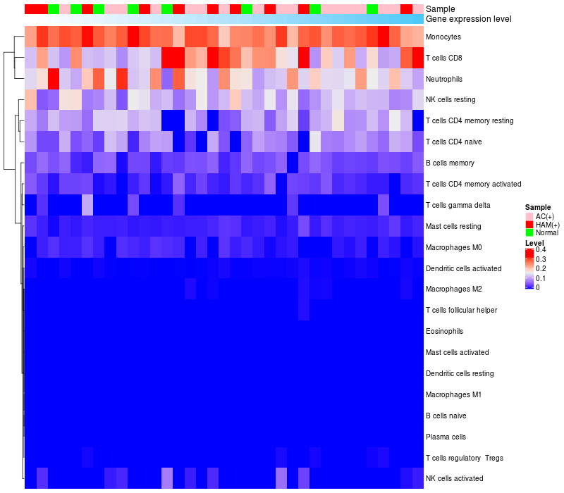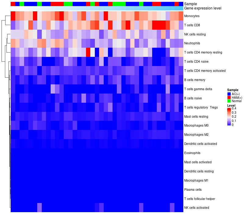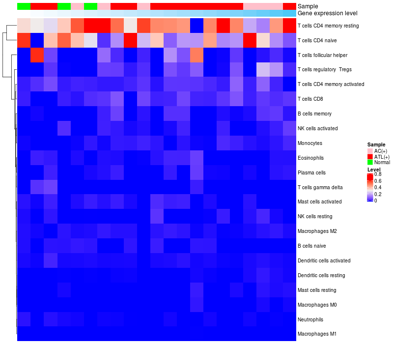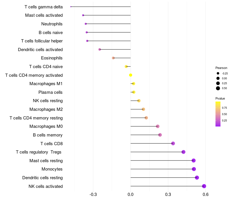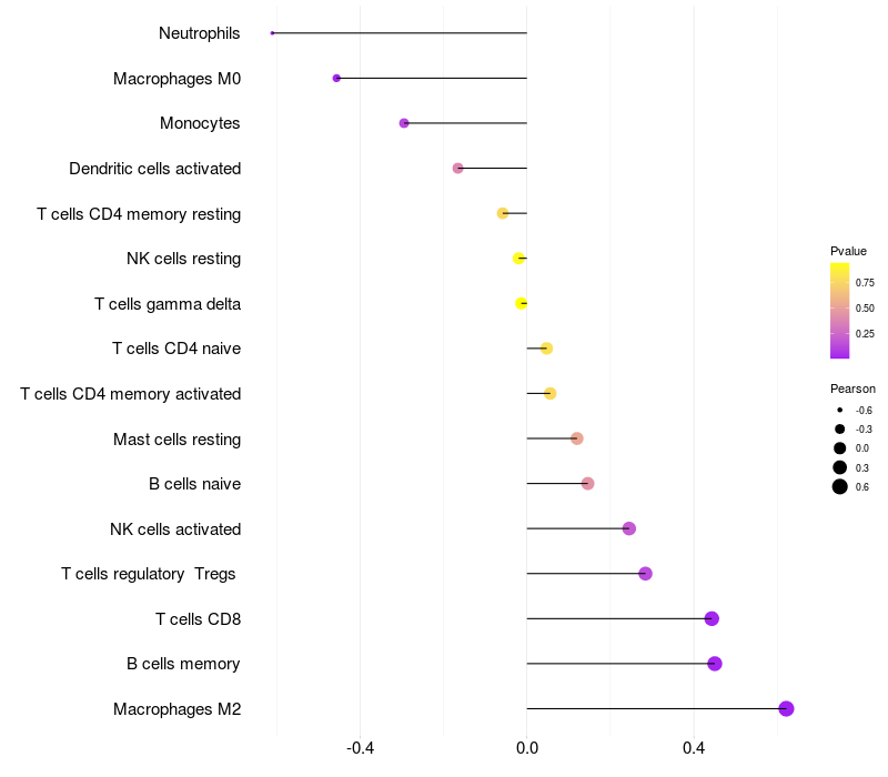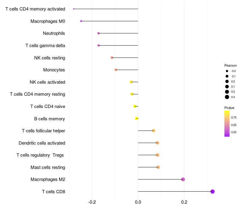 Lollipop of ATXN7L2 expression and immune infiltrating cell level correlation result in HTLV1+ samples