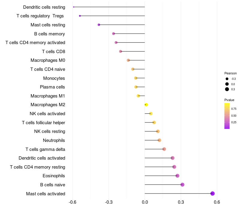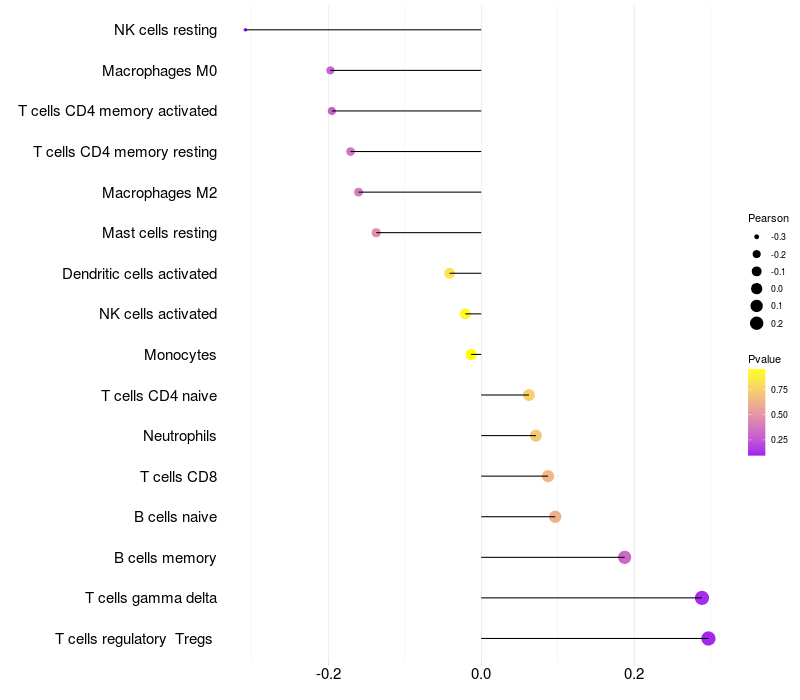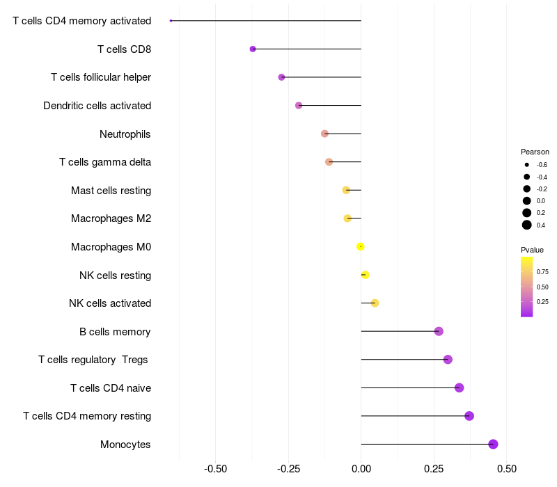 Lollipop of AXL expression and immune infiltrating cell level correlation result in HTLV1+ samples