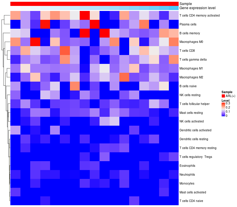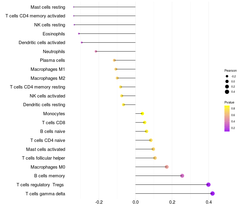Relationship between gene expression and immune infiltrating cell level