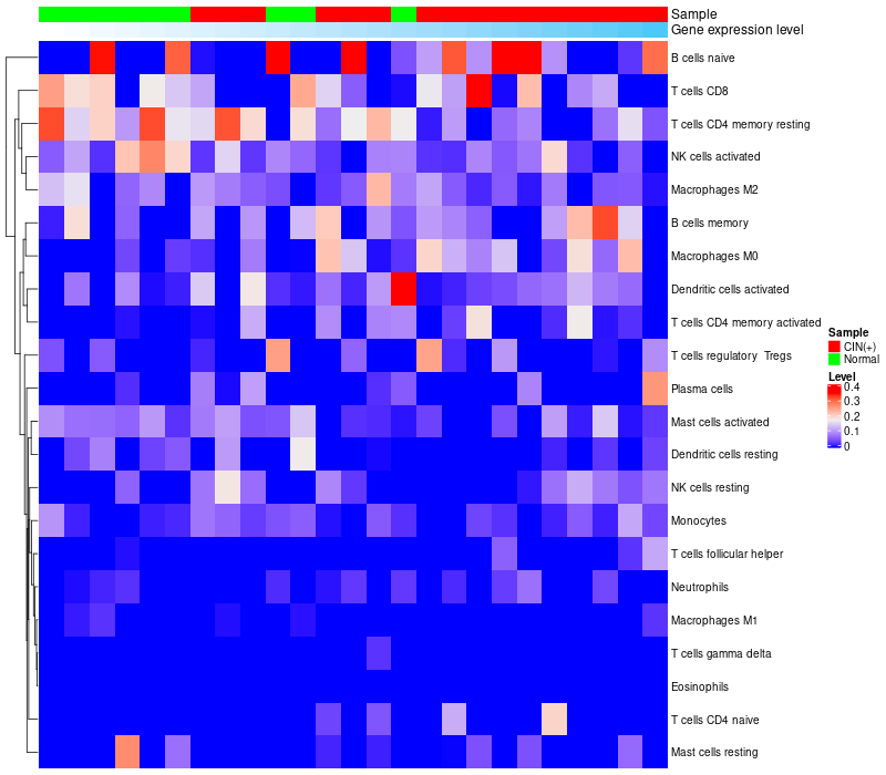 Normal (10), Cervical intraepithelial neoplasia (HPV+)(15) |