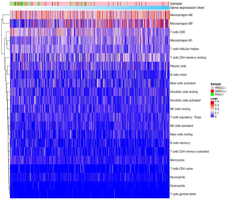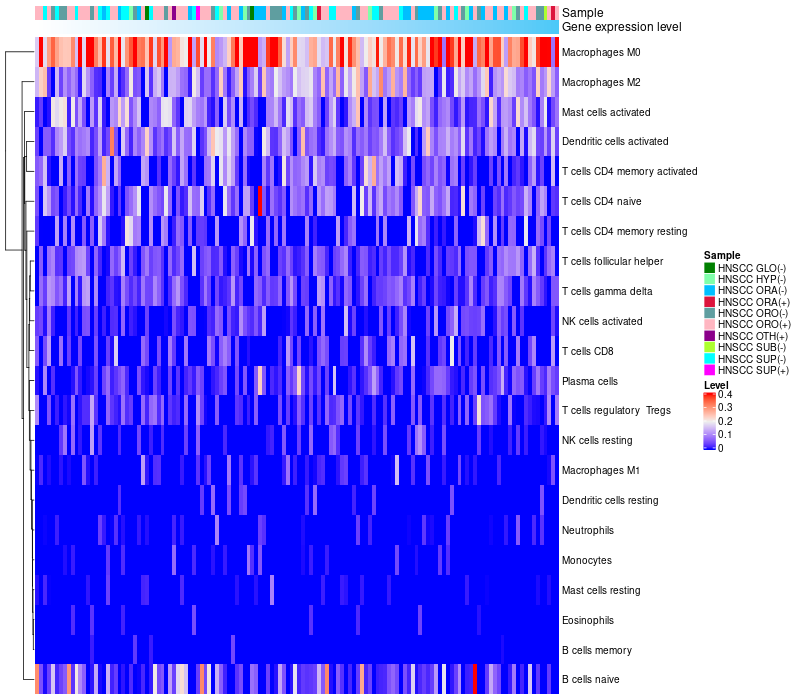 Head and Neck squamous cell carcinoma(HPV-)(483),Head and Neck squamous cell carcinoma(HPV+)(39),Paracancerous(HPV-)(44) |