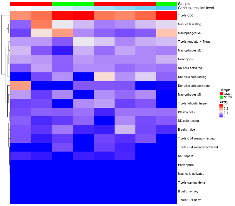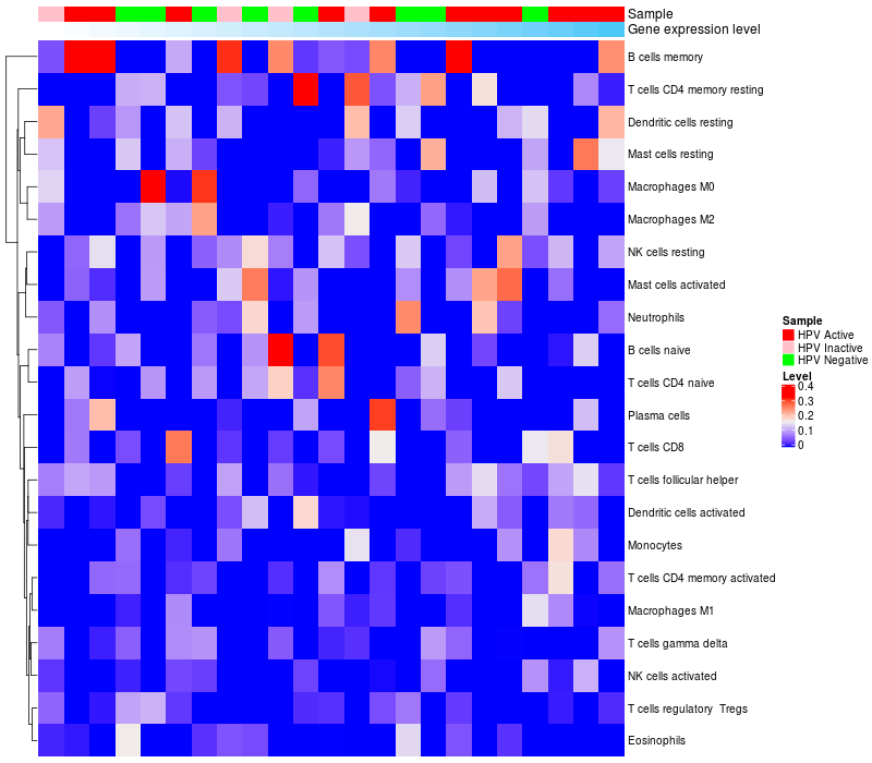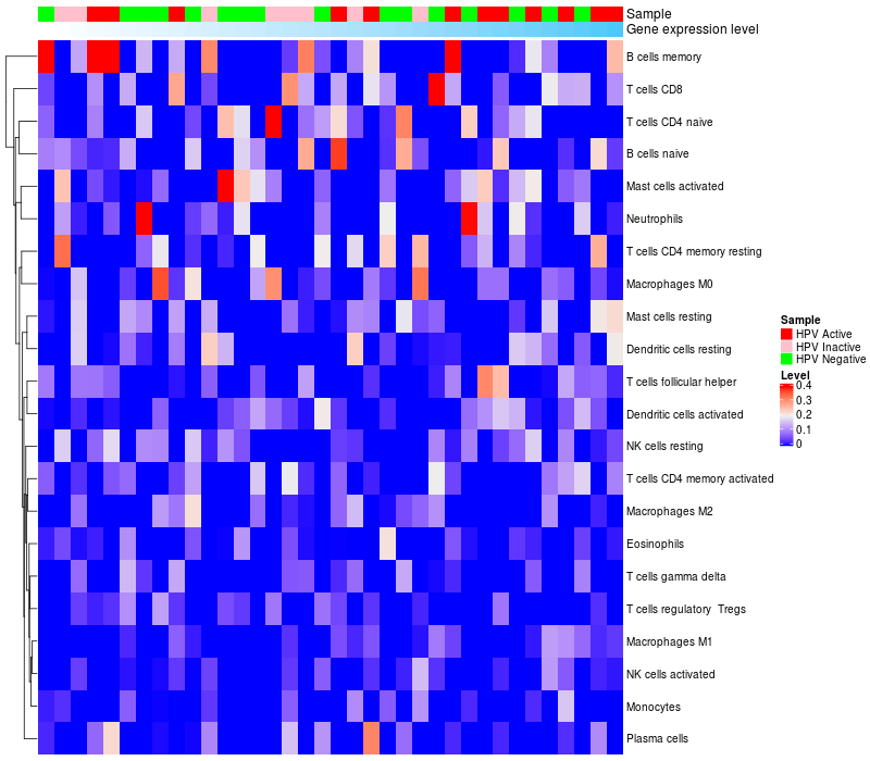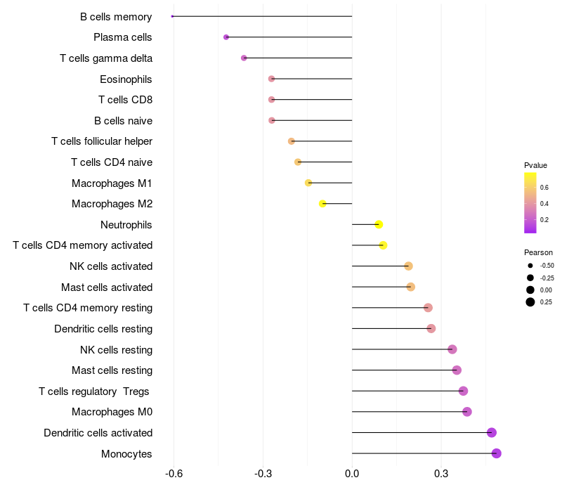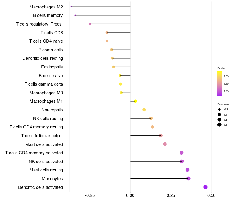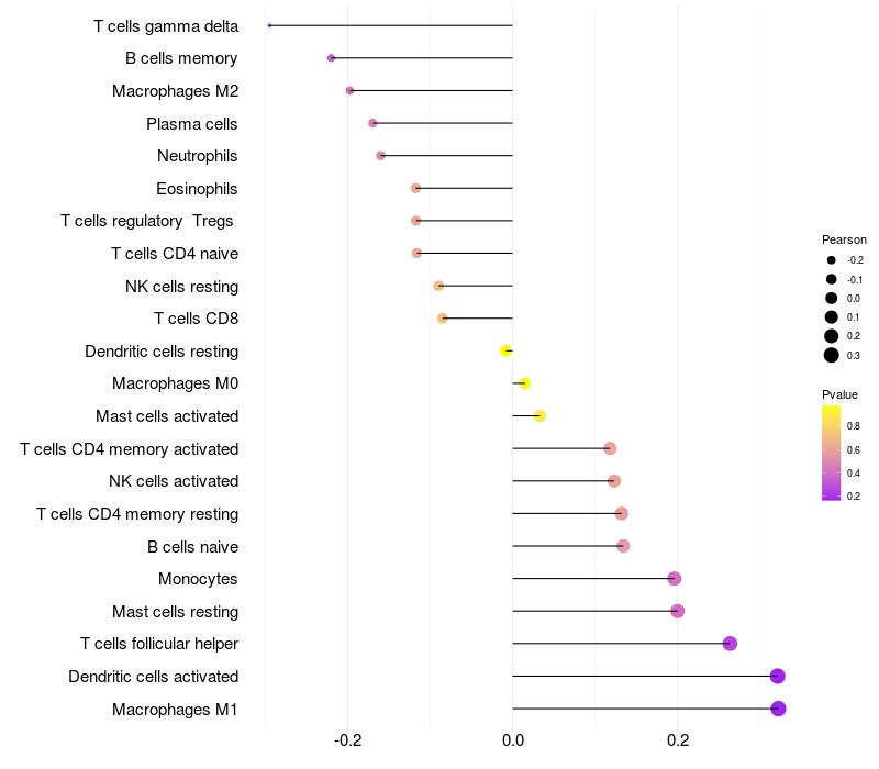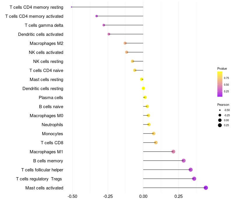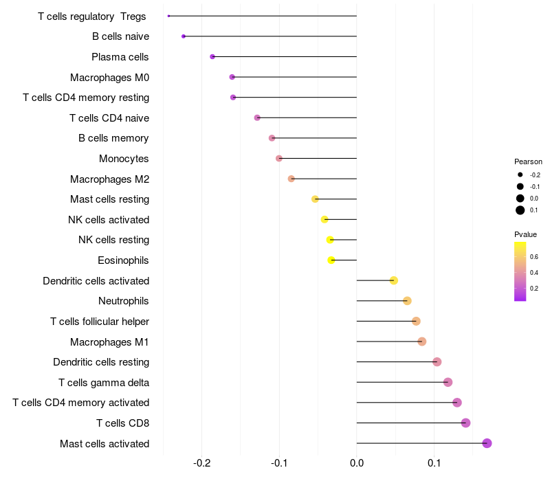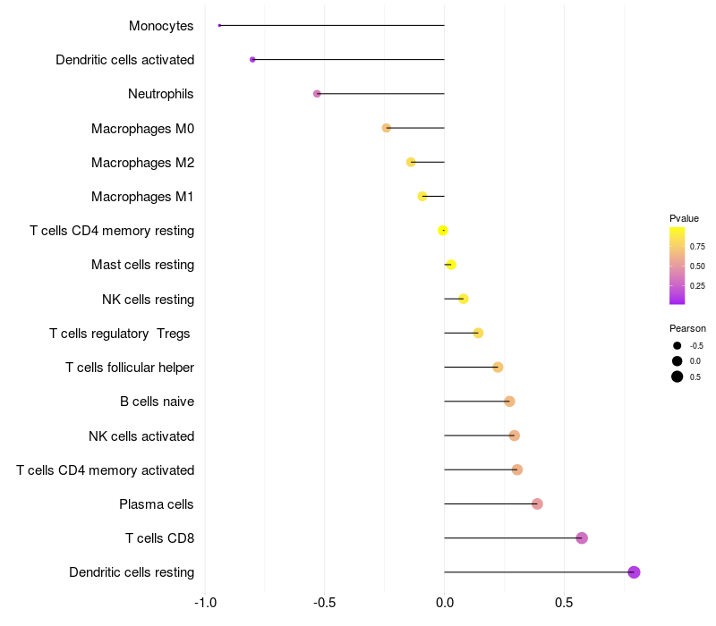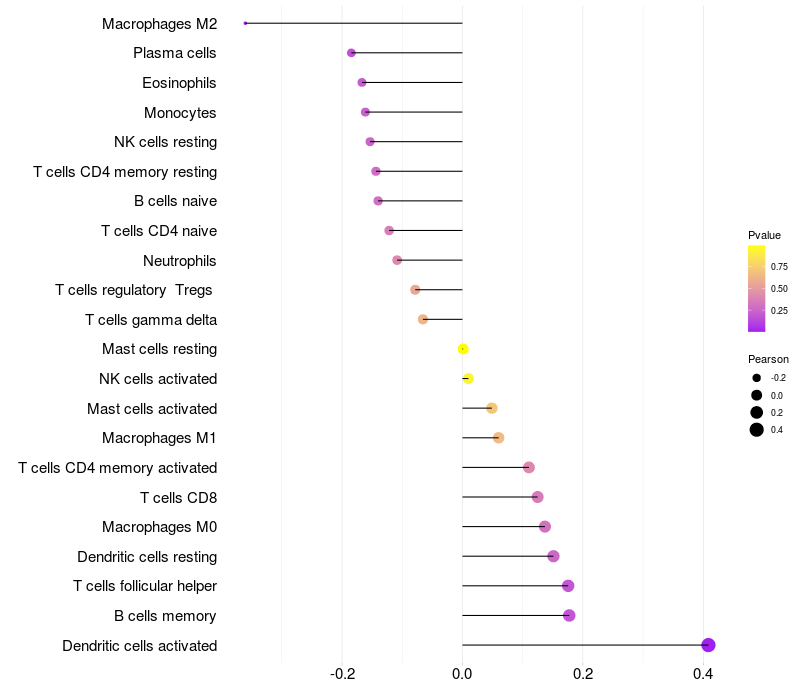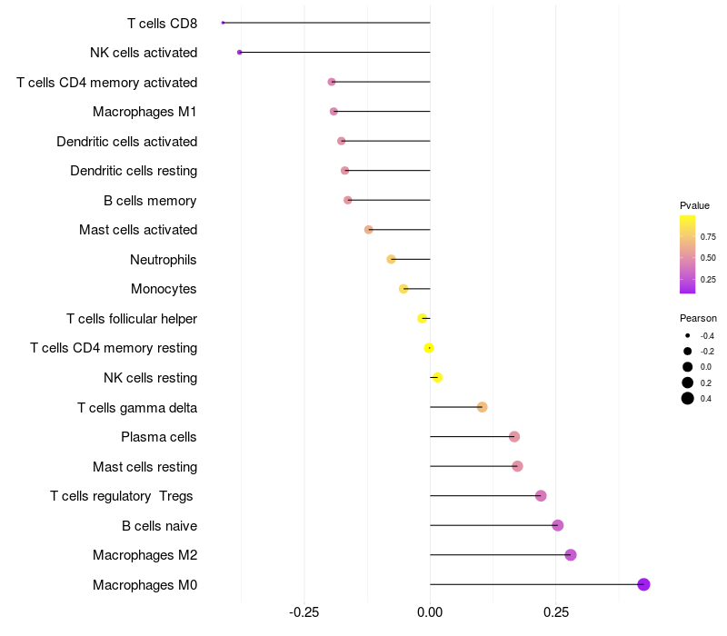 Lollipop of BAD expression and immune infiltrating cell level correlation result in HPV+ samples