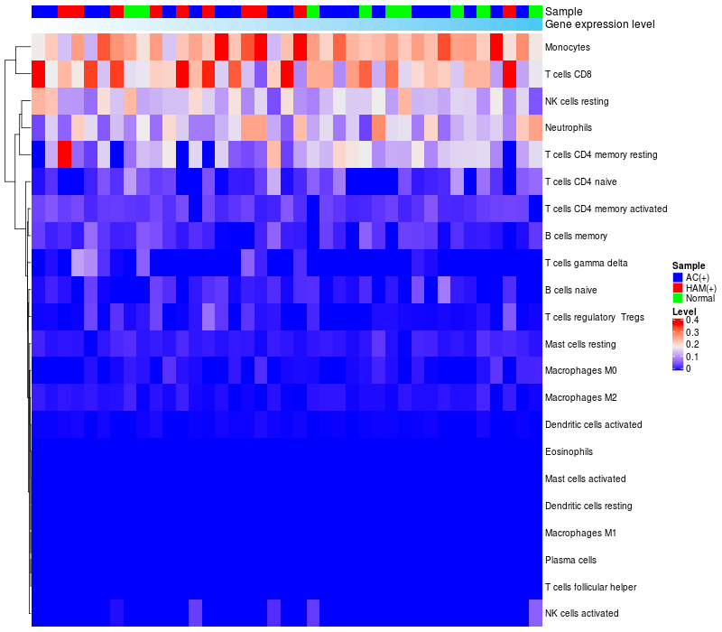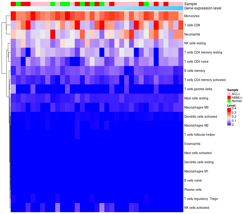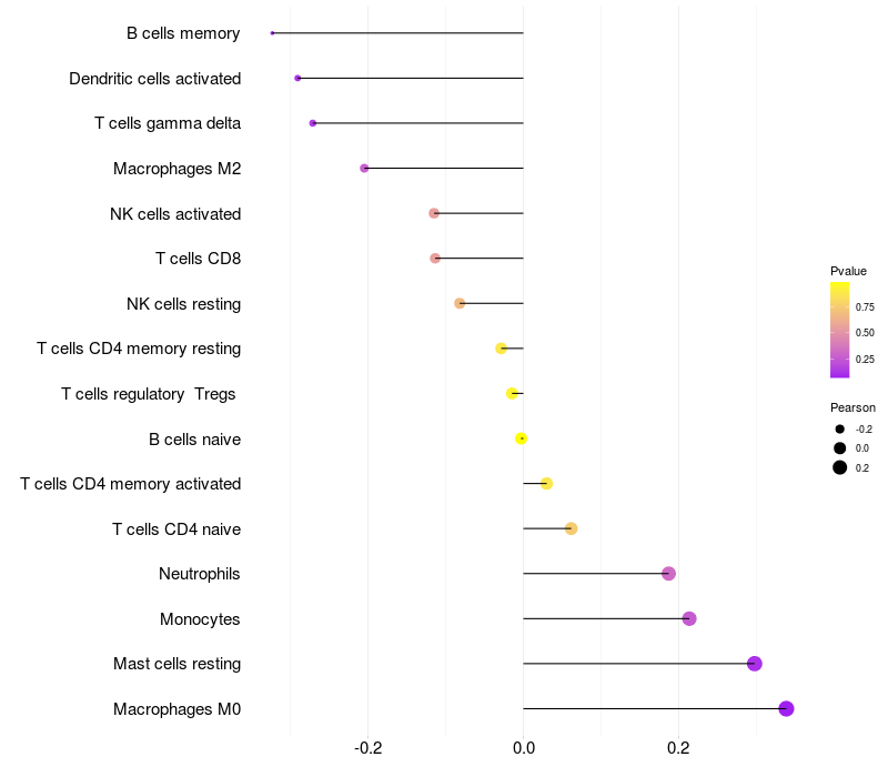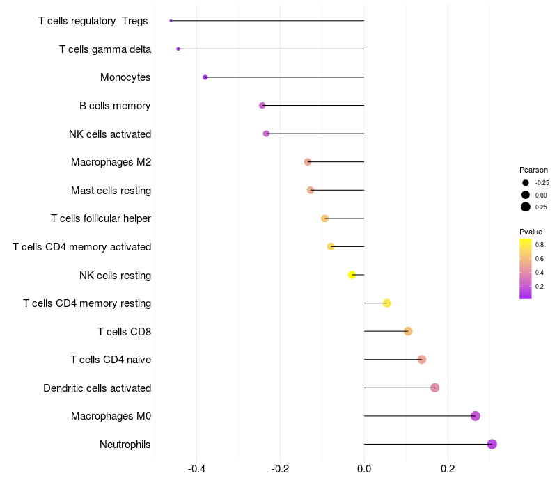 Relationship between gene expression and immune infiltrating cell level