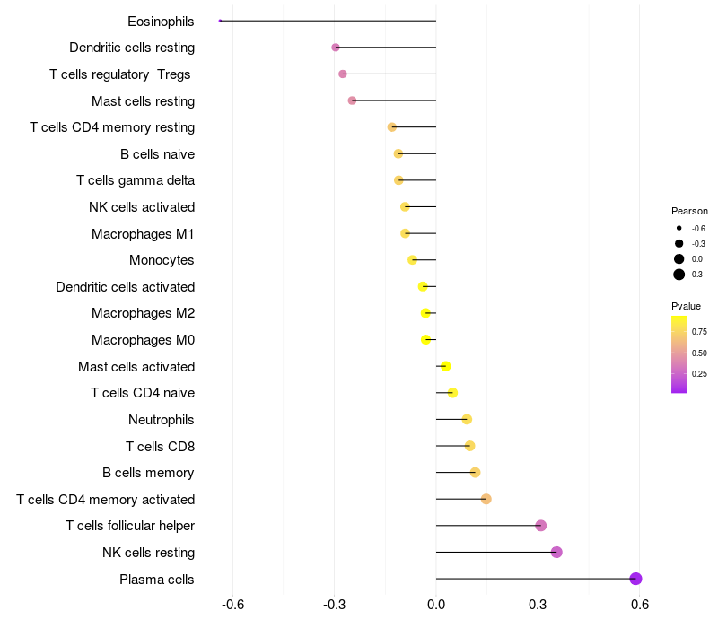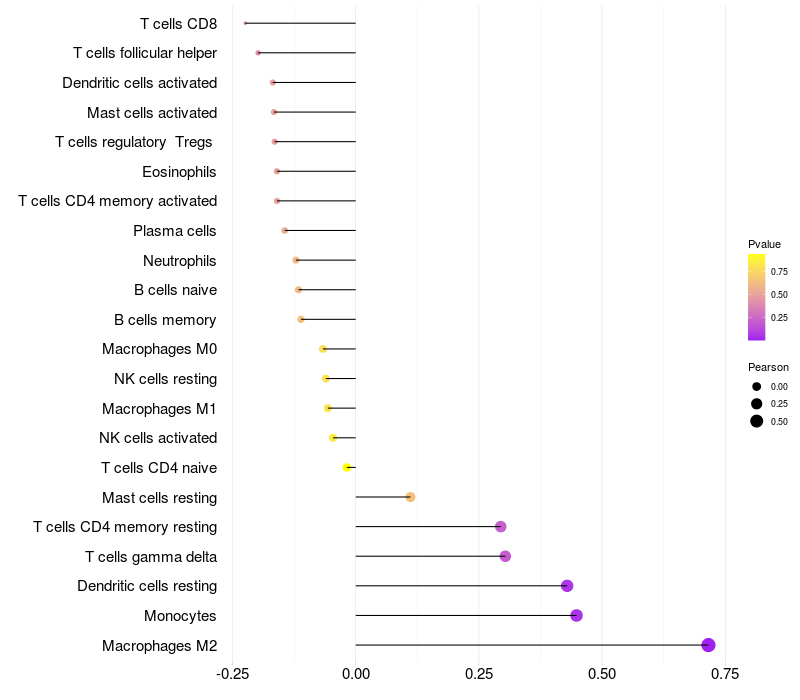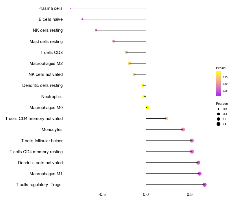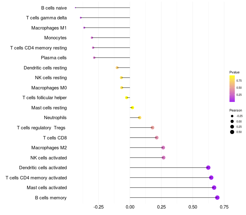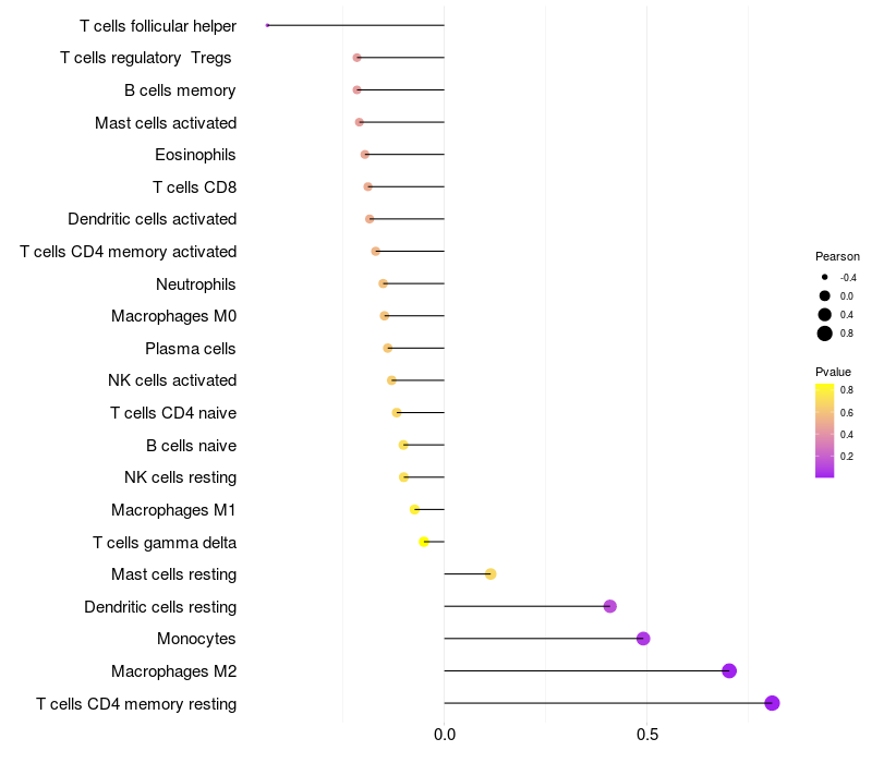 Lollipop of BANF2 expression and immune infiltrating cell level correlation result in HPV+ samples