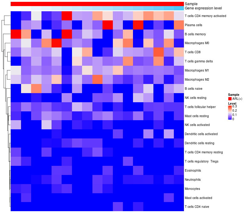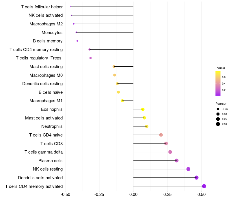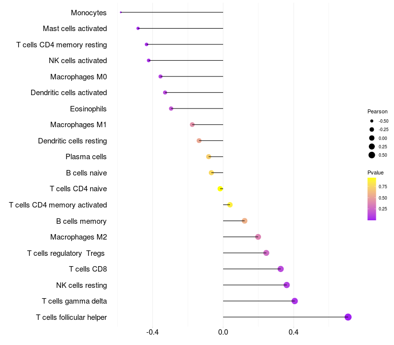 Relationship between gene expression and immune infiltrating cell level
