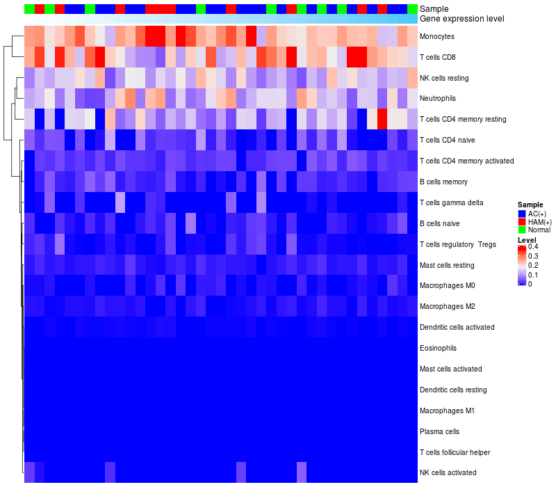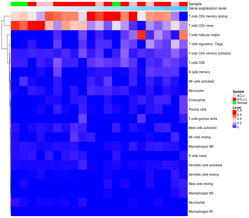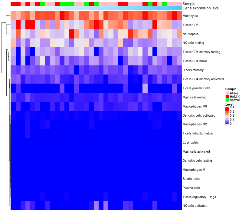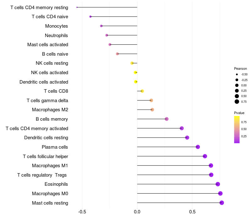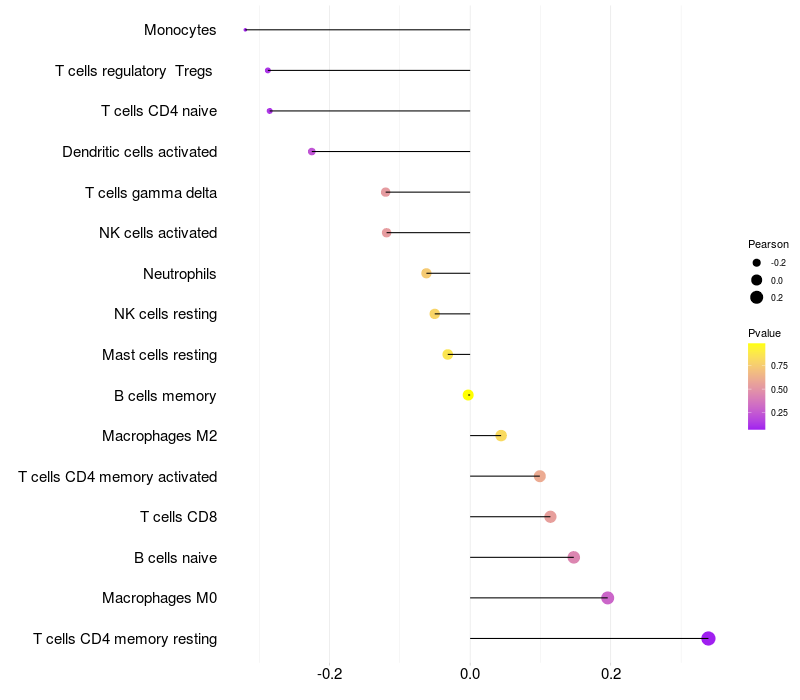 Lollipop of BIK expression and immune infiltrating cell level correlation result in HTLV1+ samples