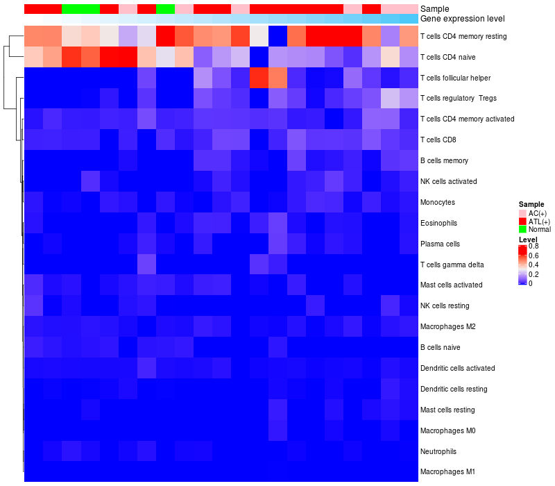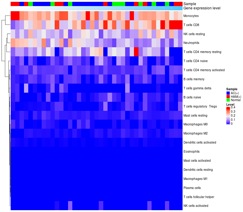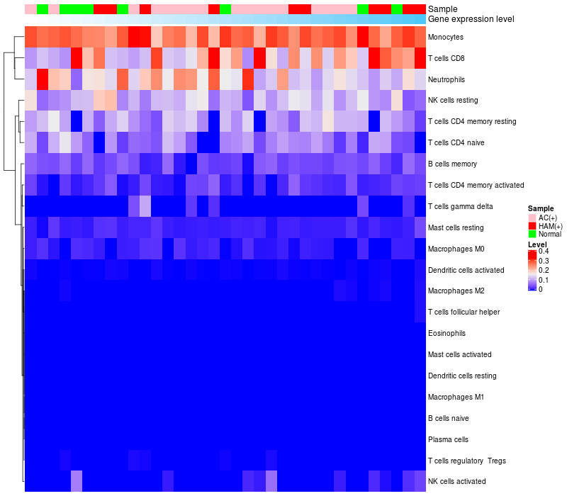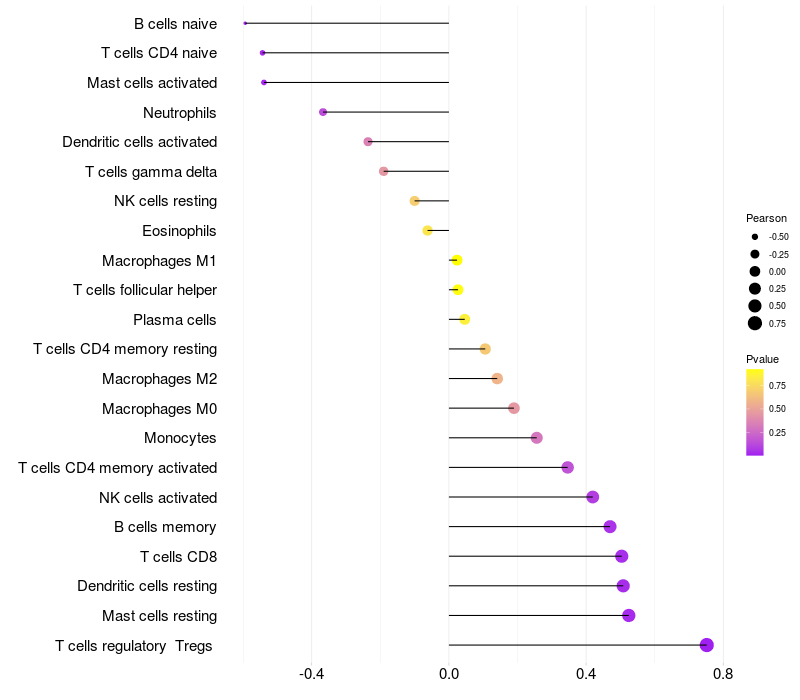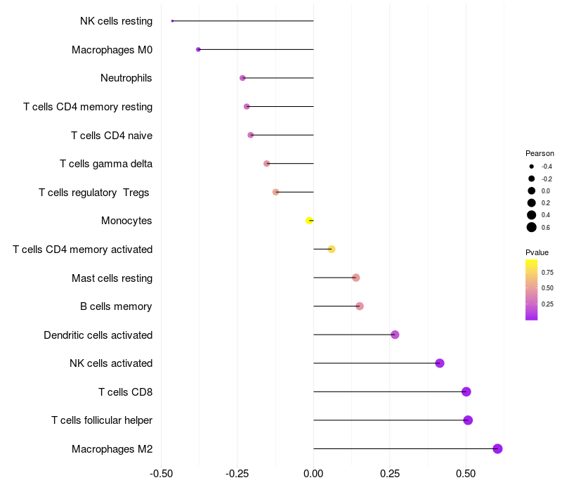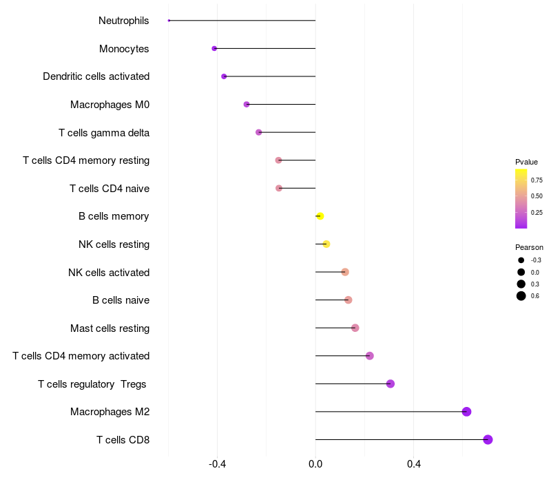 Lollipop of BIVM expression and immune infiltrating cell level correlation result in HTLV1+ samples