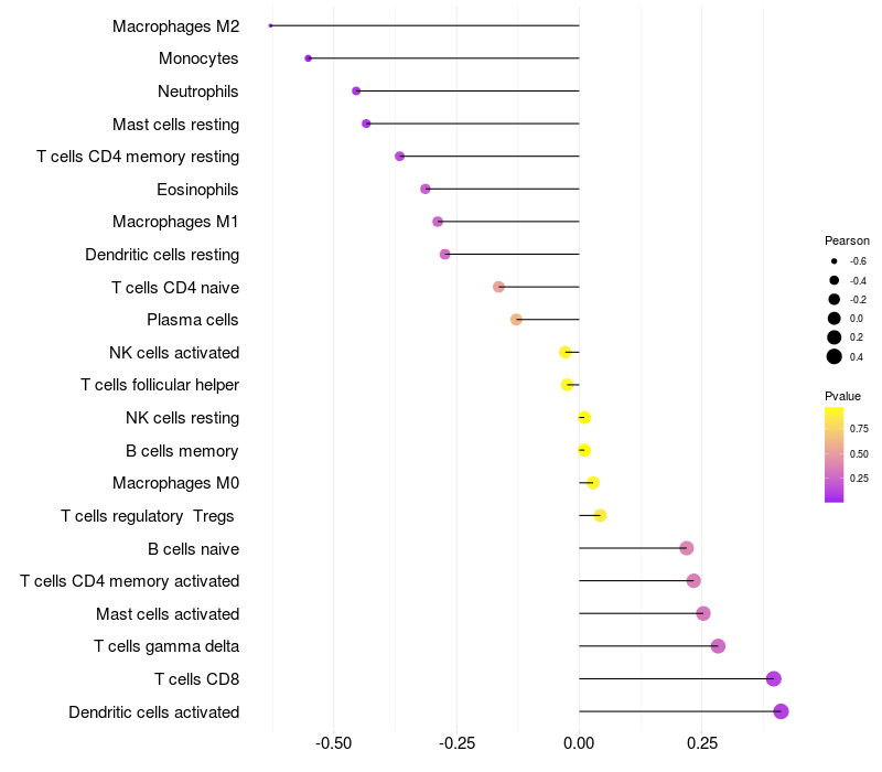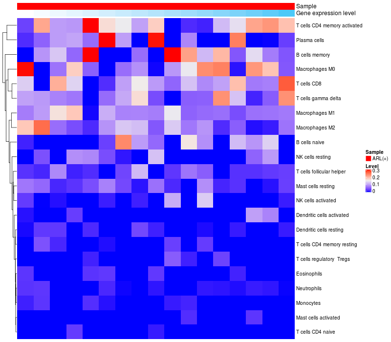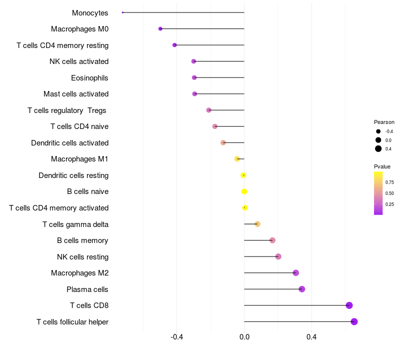 Relationship between gene expression and immune infiltrating cell level