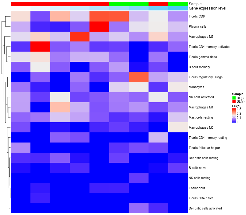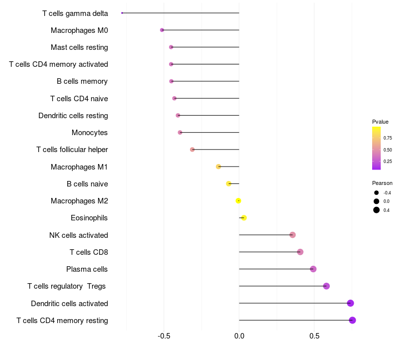 Relationship between gene expression and immune infiltrating cell level