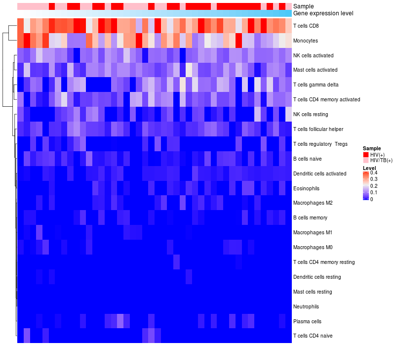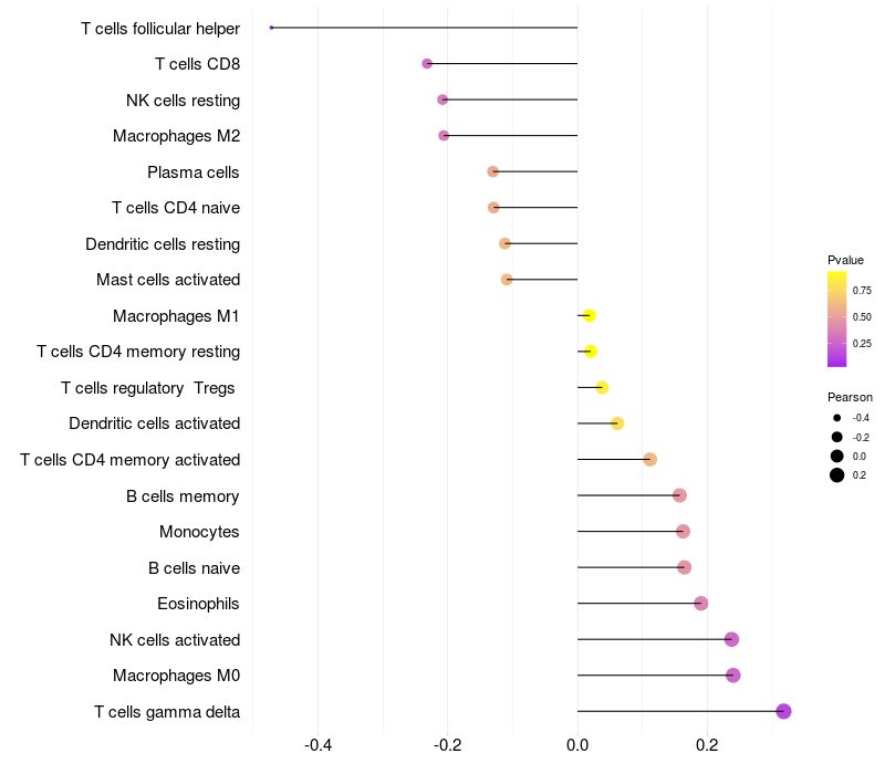 Relationship between gene expression and immune infiltrating cell level