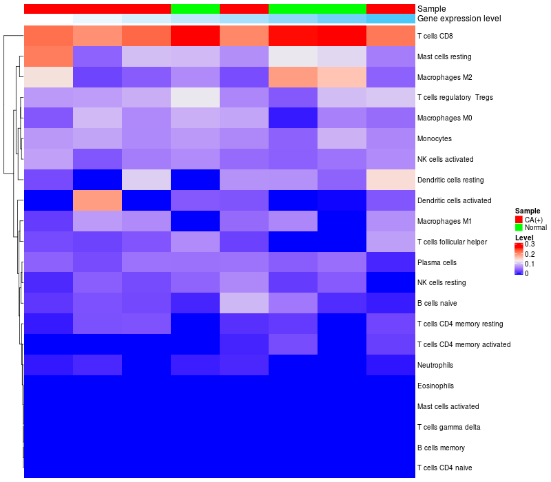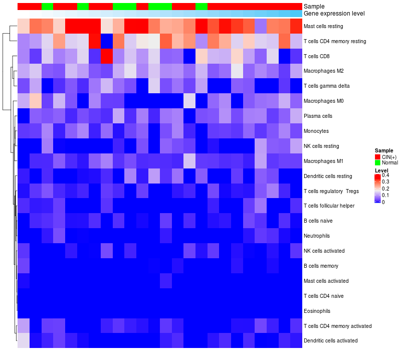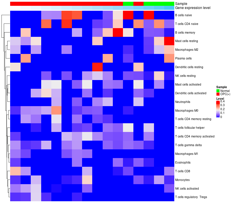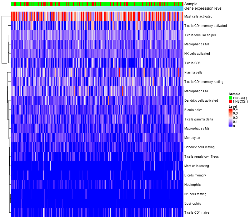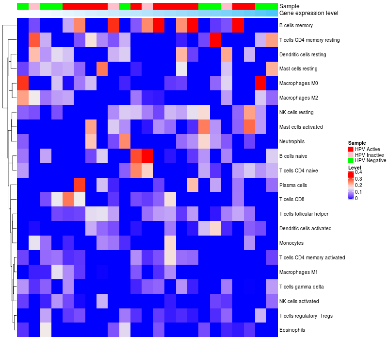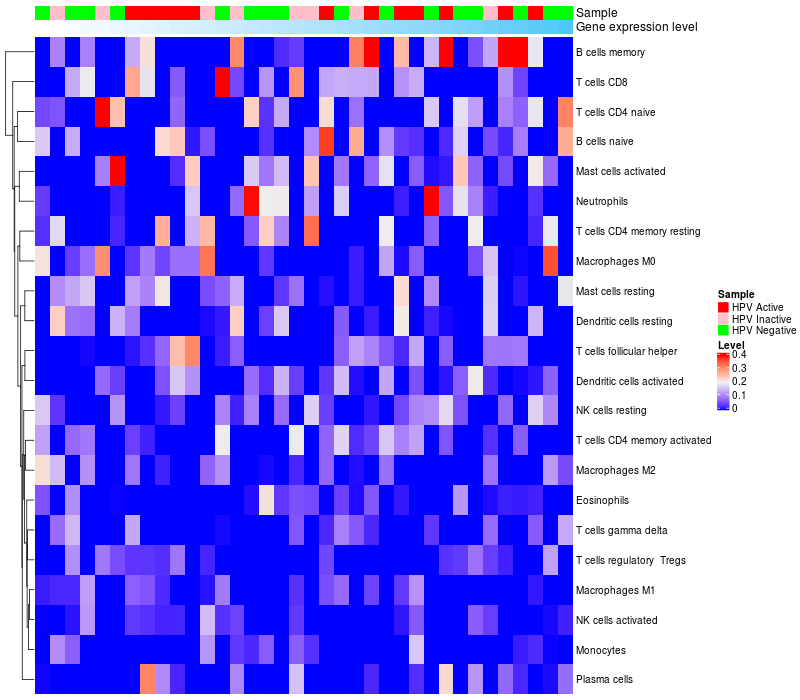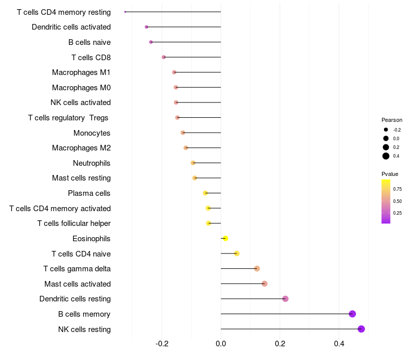 Lollipop of BMP3 expression and immune infiltrating cell level correlation result in HPV+ samples