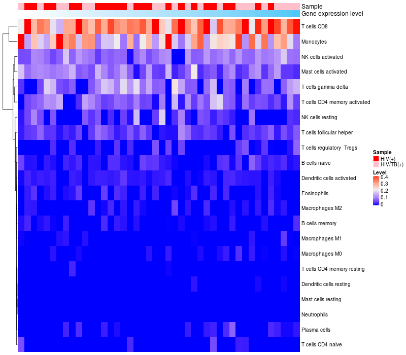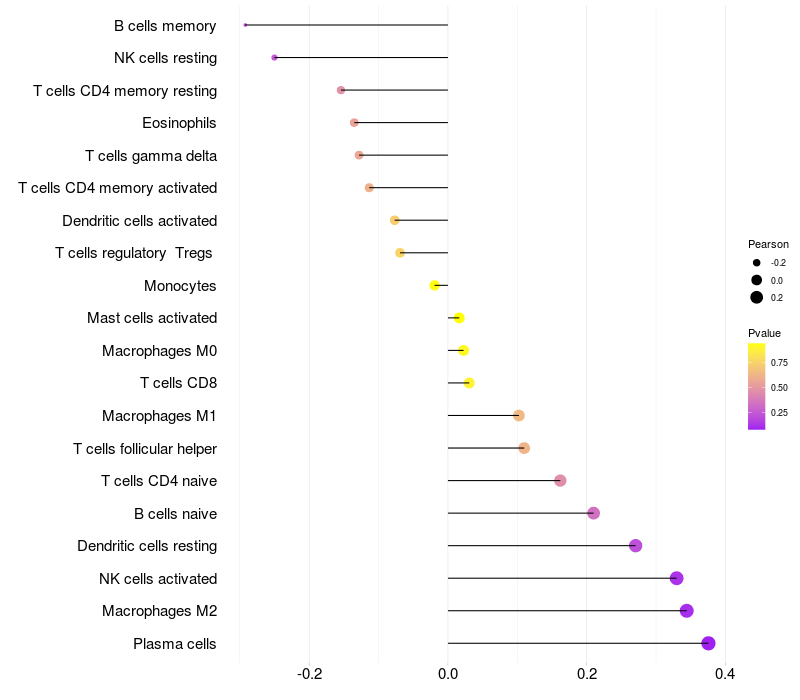 Relationship between gene expression and immune infiltrating cell level