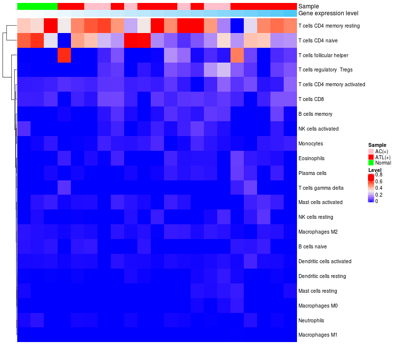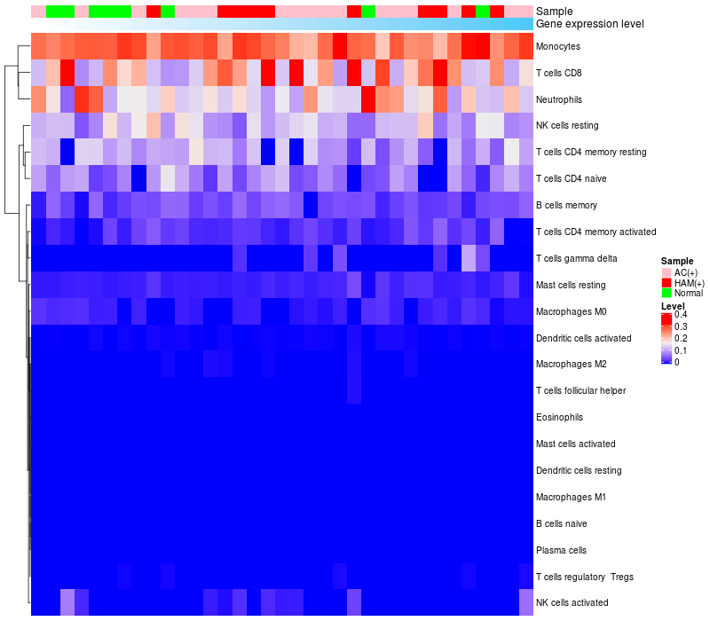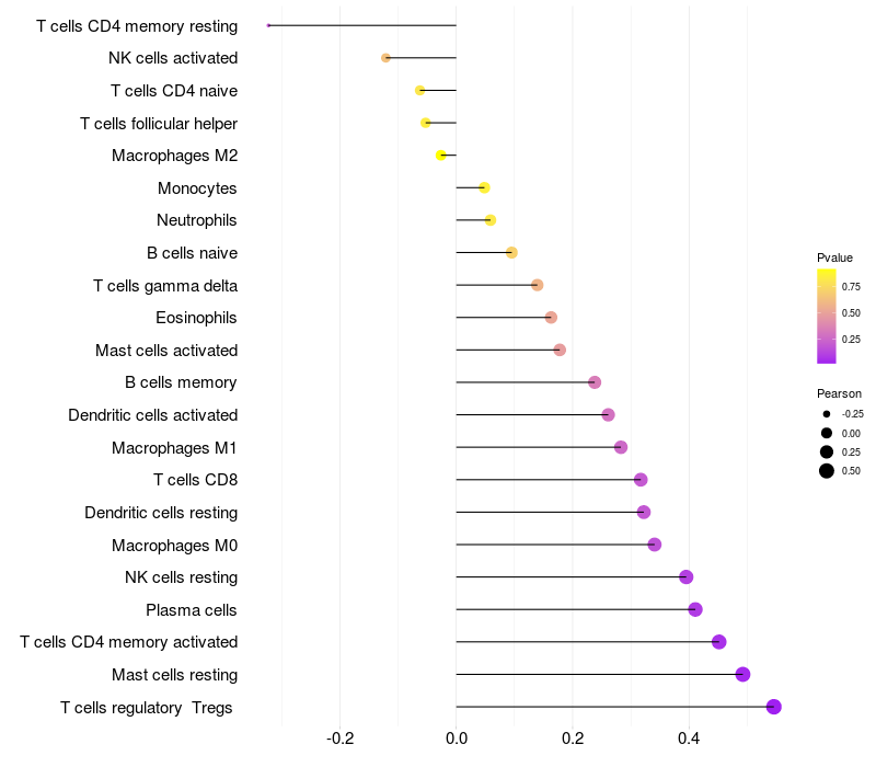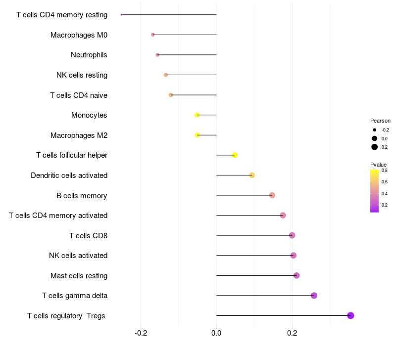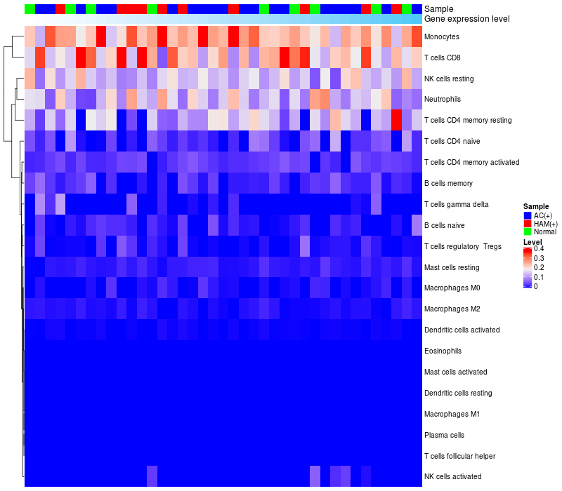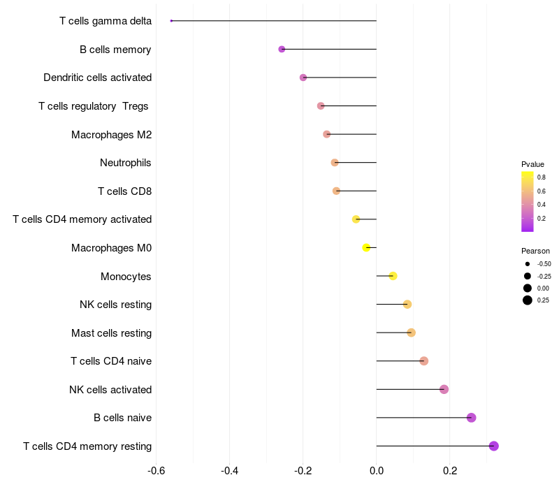 Relationship between gene expression and immune infiltrating cell level