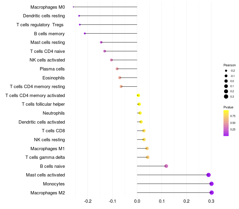 Lollipop of C11orf24 expression and immune infiltrating cell level correlation result in HBV+ samples