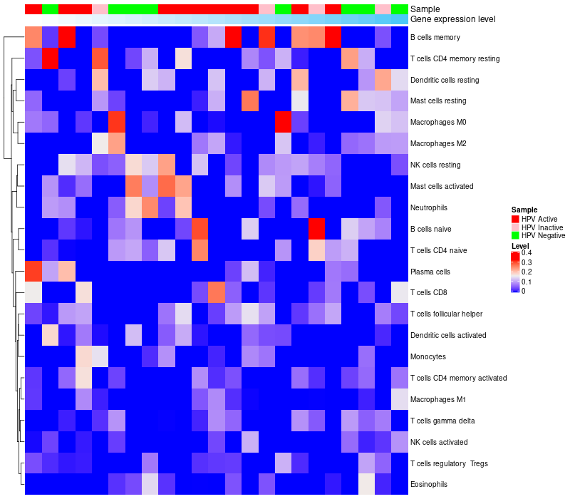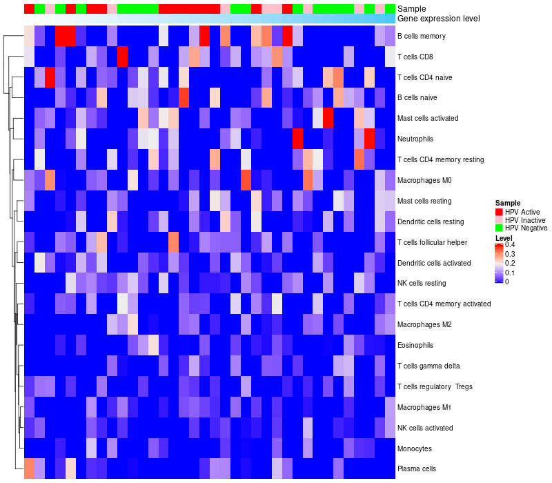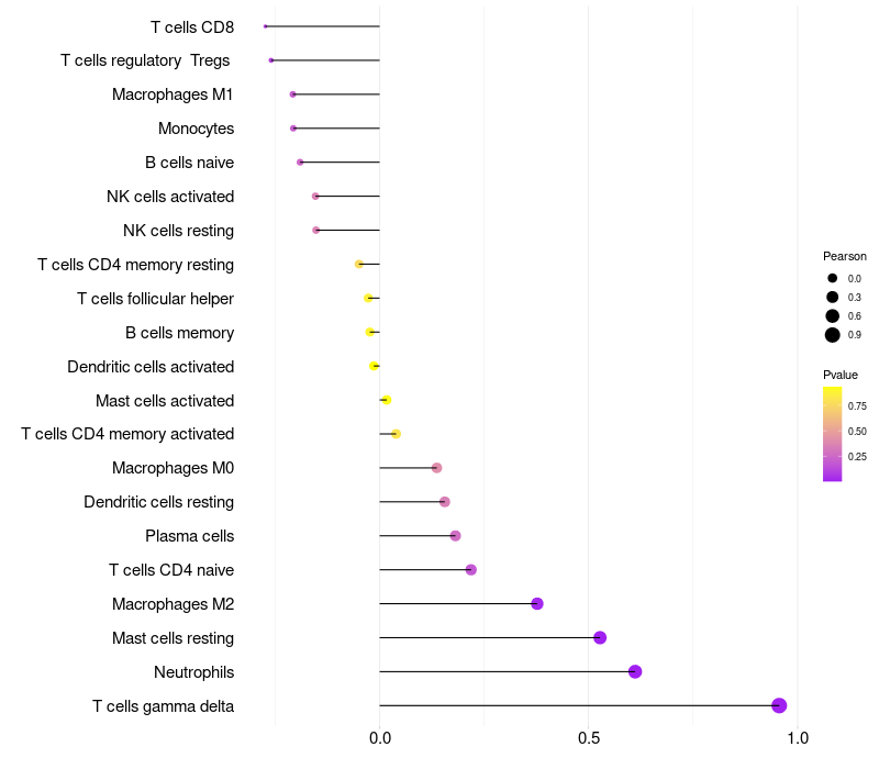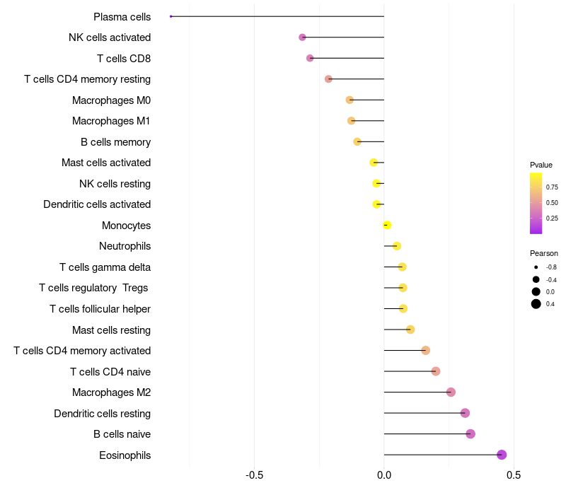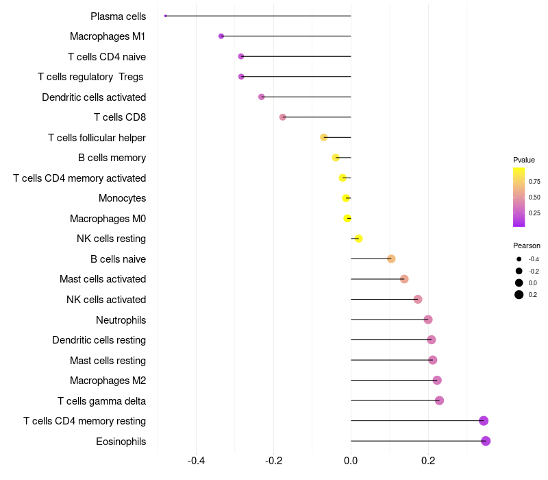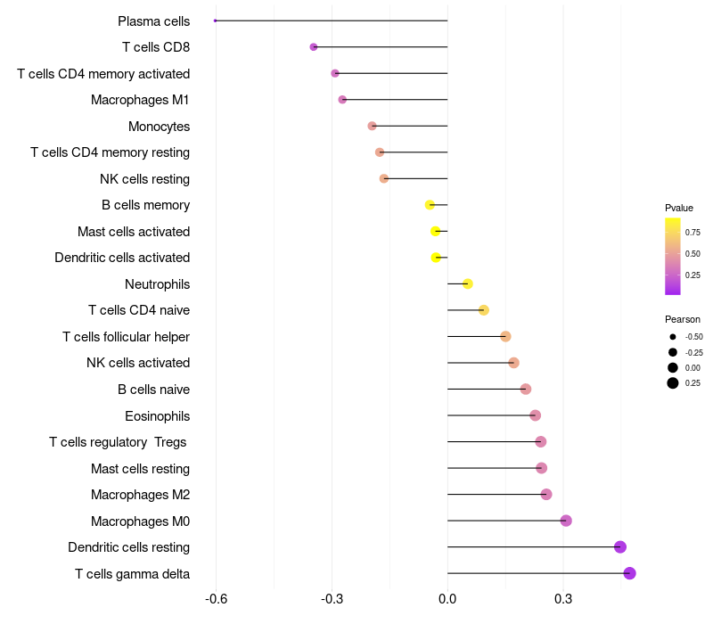 Lollipop of C11orf87 expression and immune infiltrating cell level correlation result in HPV+ samples