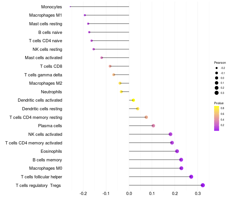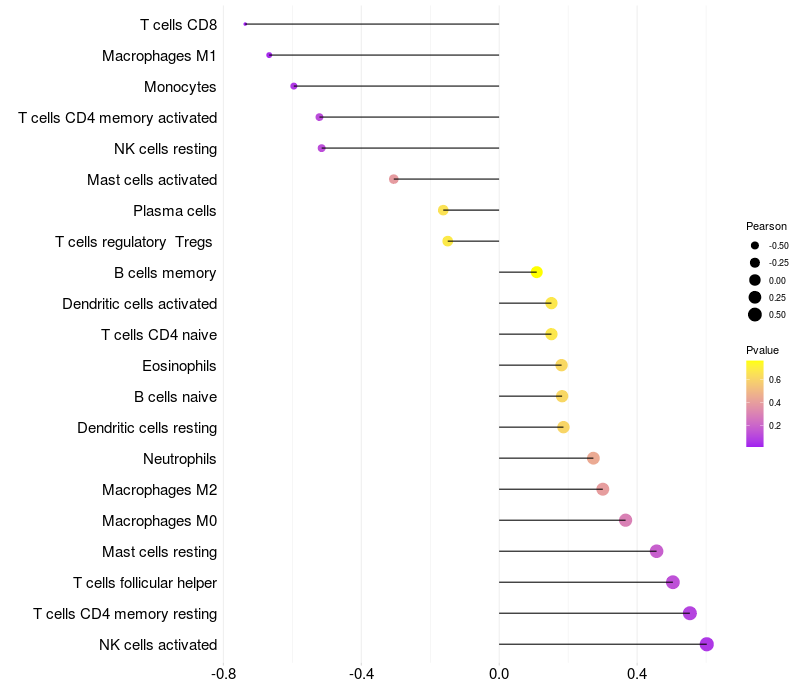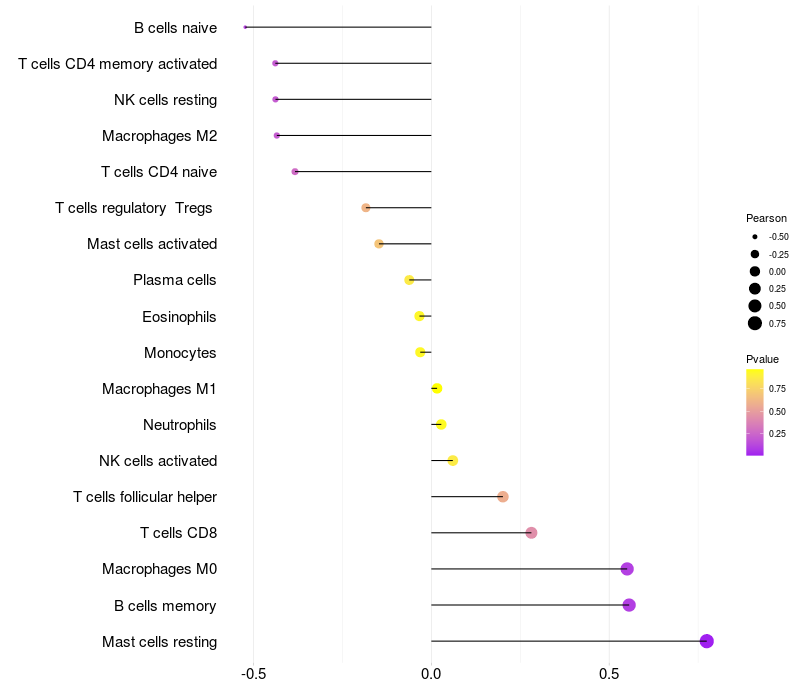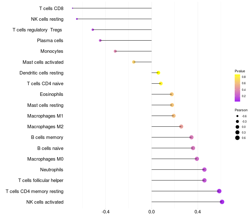Lollipop of C12orf4 expression and immune infiltrating cell level correlation result in HBV+ Liver cirrhosis samples