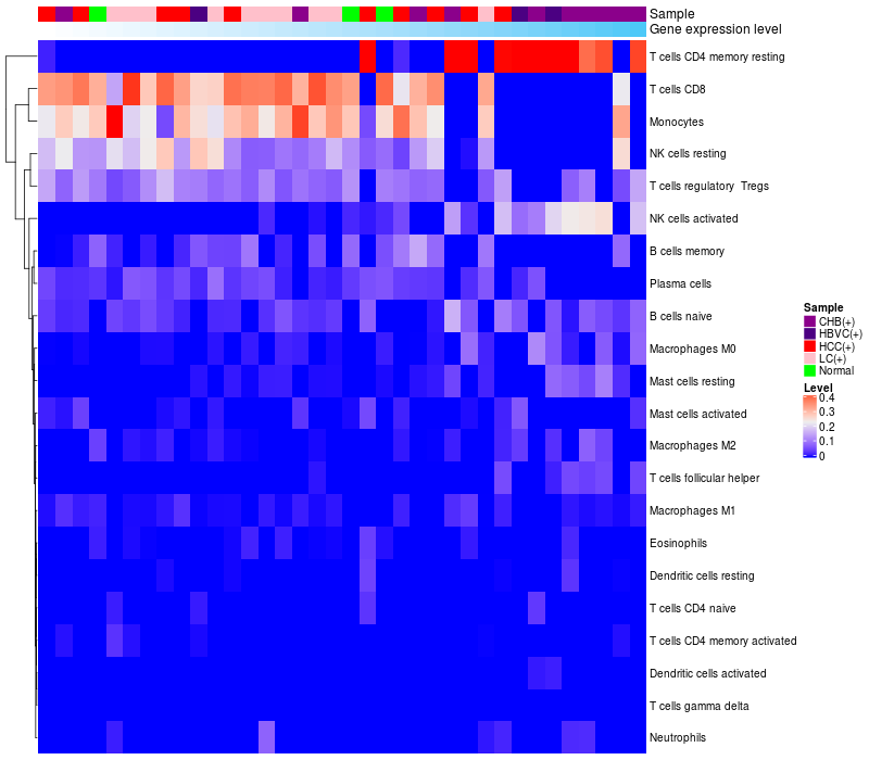 Liver hepatocellular carcinoma HCV (HBV+)(86), Liver hepatocellular carcinoma HCV (HBV-)(19), Liver hepatocellular carcinoma (HBV+)(209), Liver hepatocellular carcinoma (HBV+)(60), Paracancerous HCV (HBV+)(4), Paracancerous (HBV-)(28), Paracancerous (HBV+)(18) |