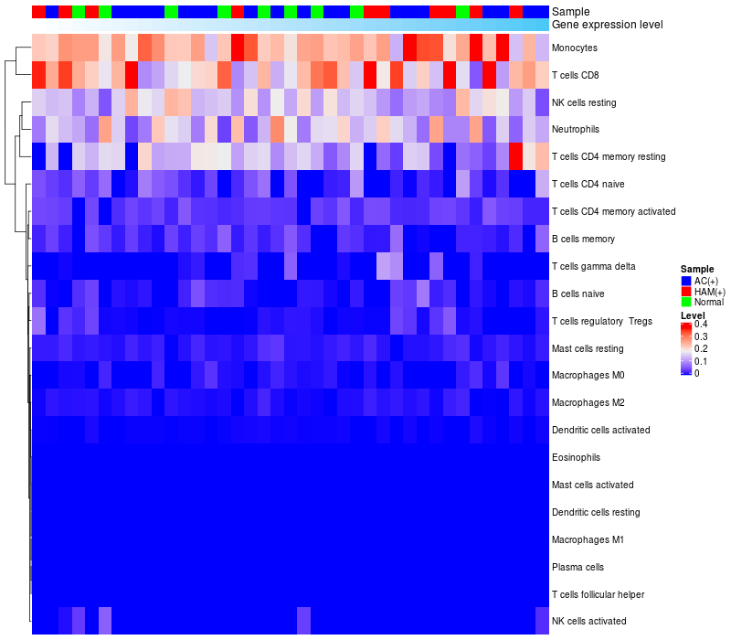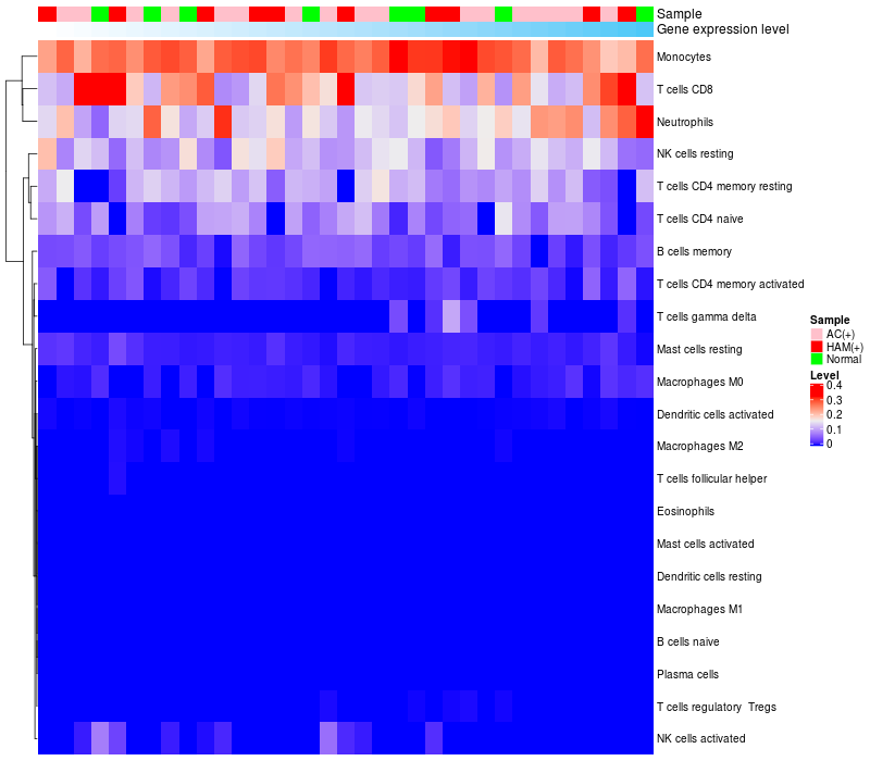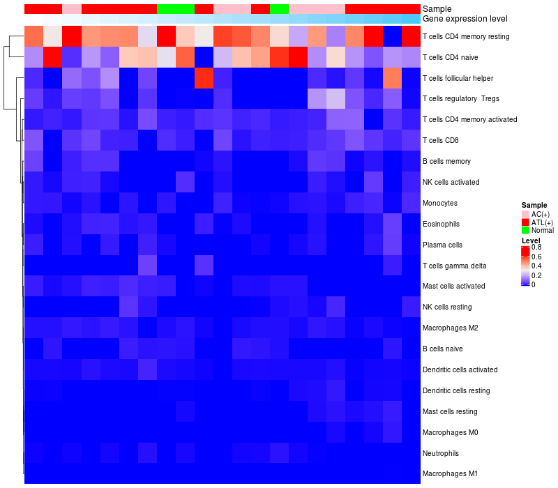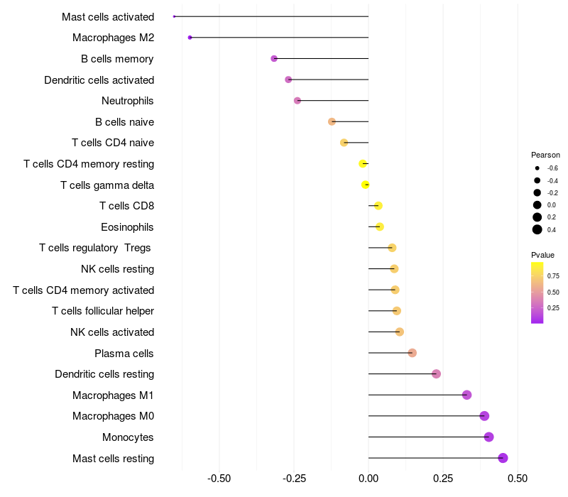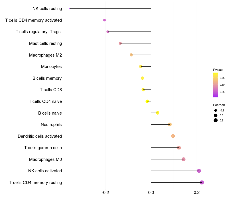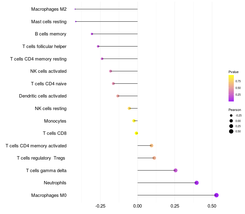 Lollipop of C12orf54 expression and immune infiltrating cell level correlation result in HTLV1+ samples