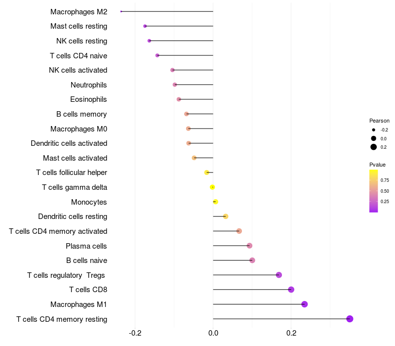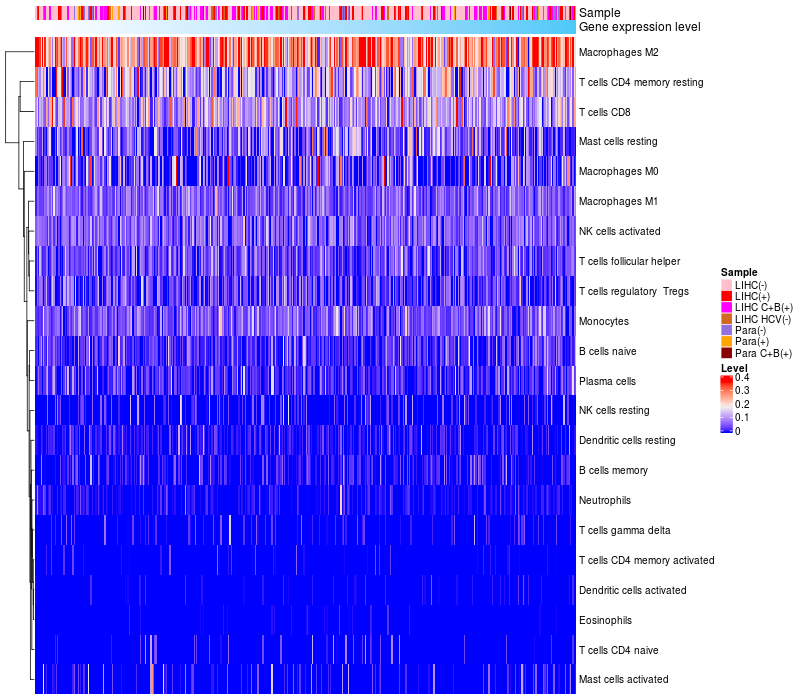 Relationship between gene expression and immune infiltrating cell level