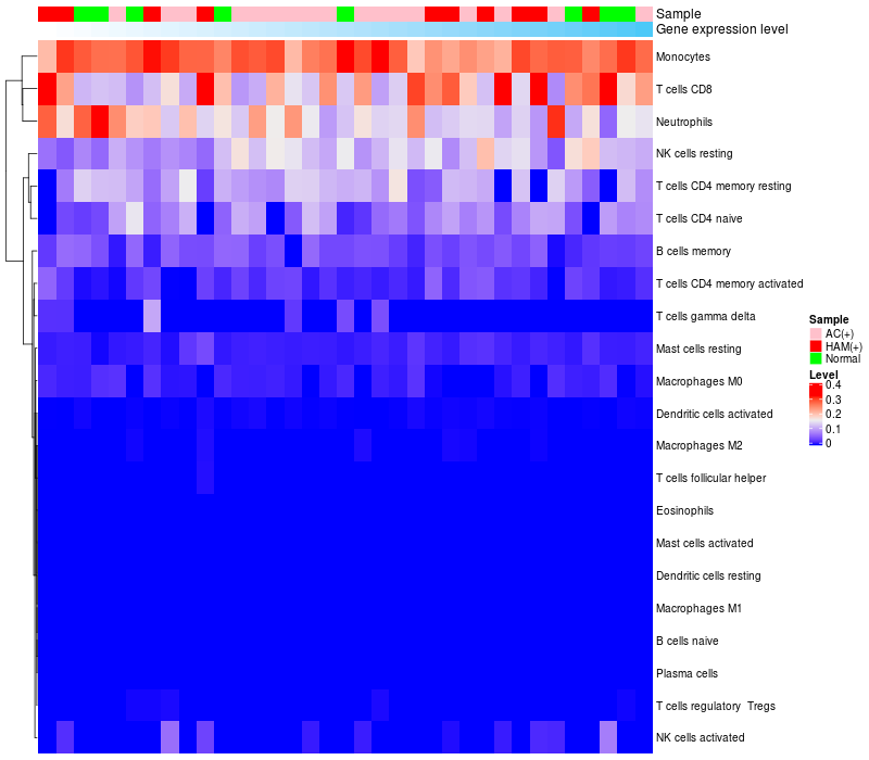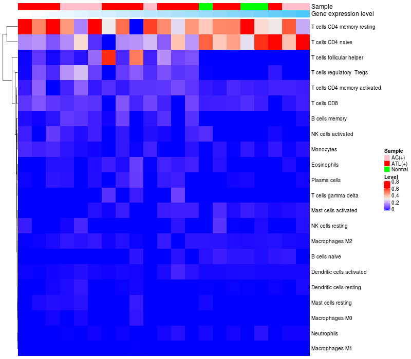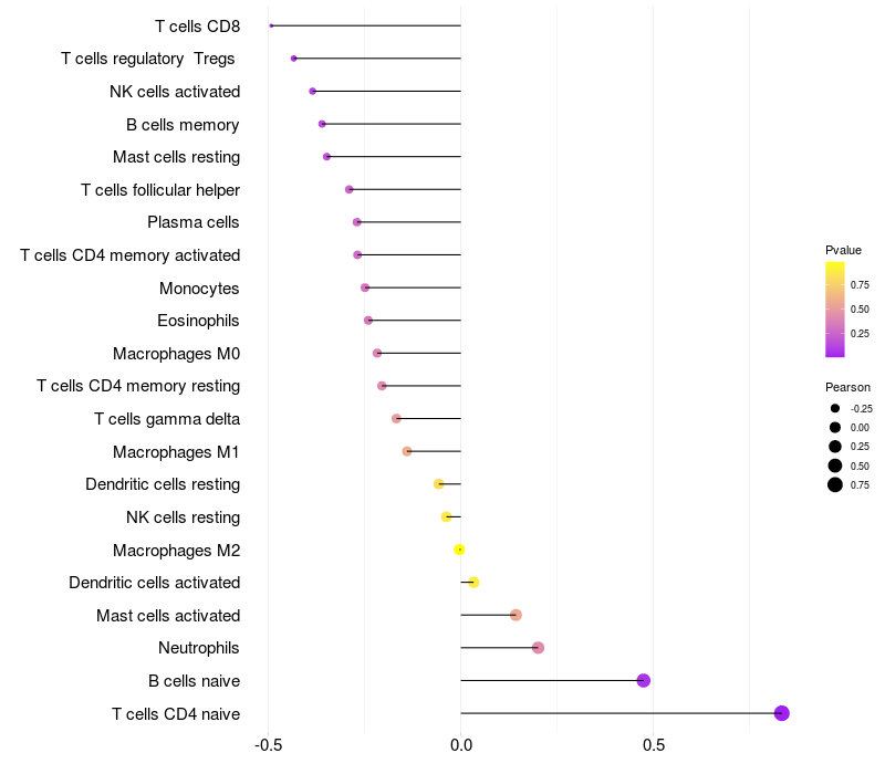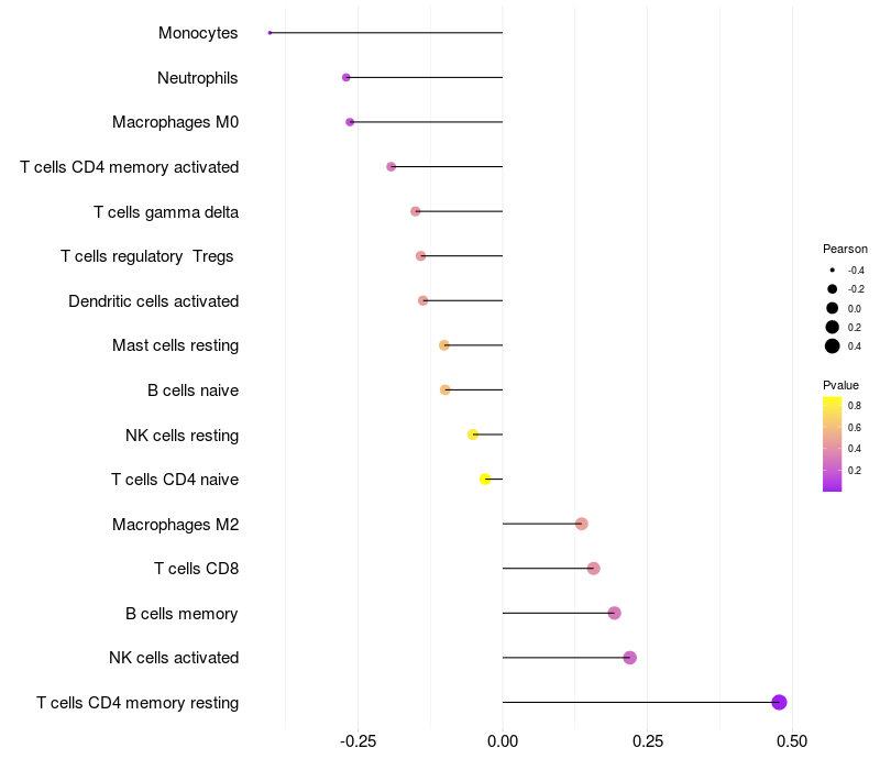 Lollipop of C14orf132 expression and immune infiltrating cell level correlation result in HTLV1+ samples