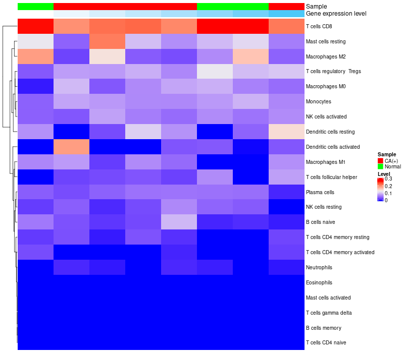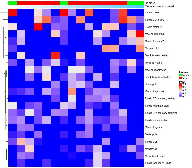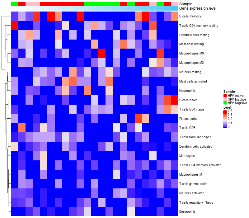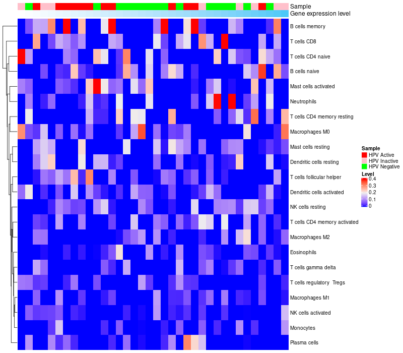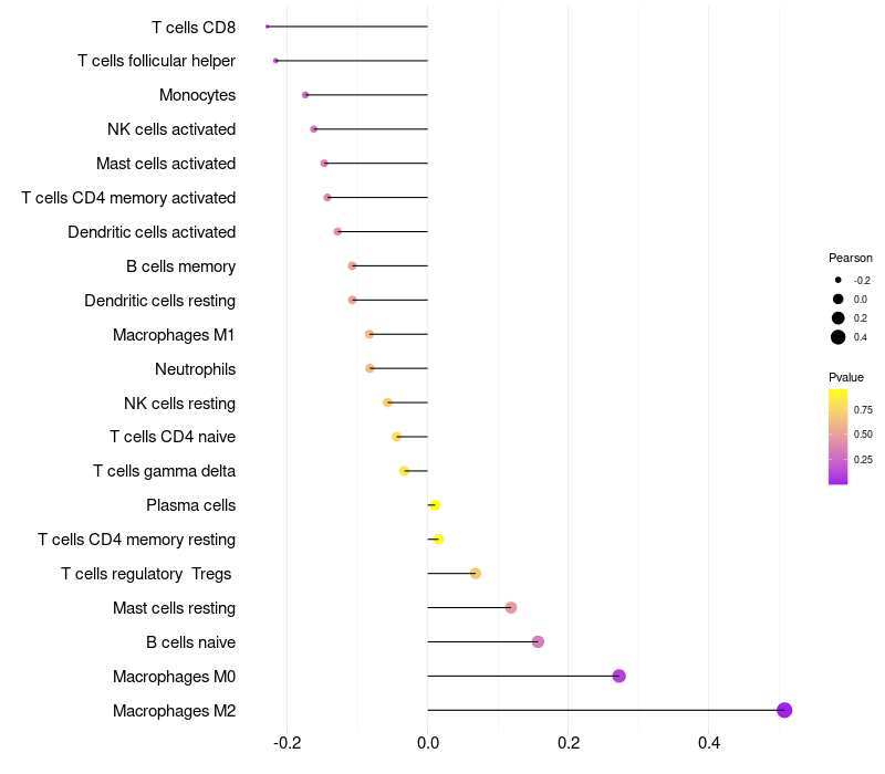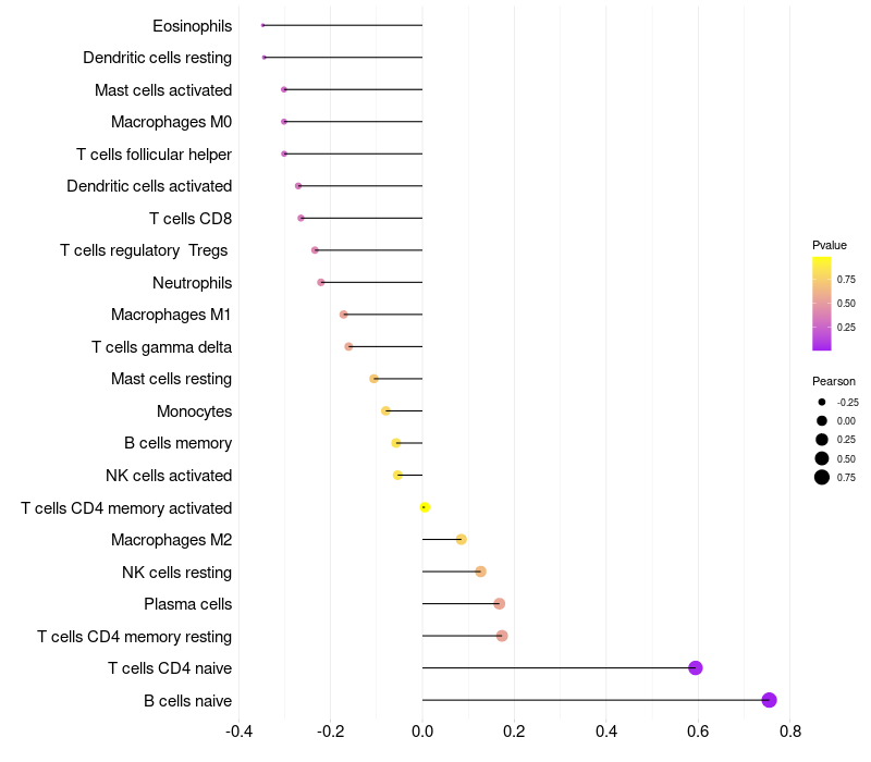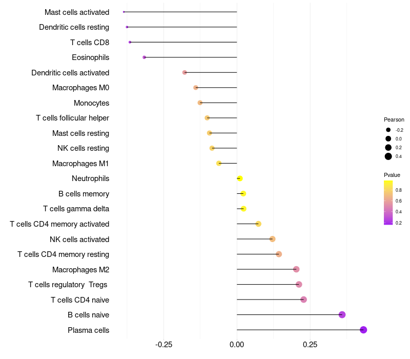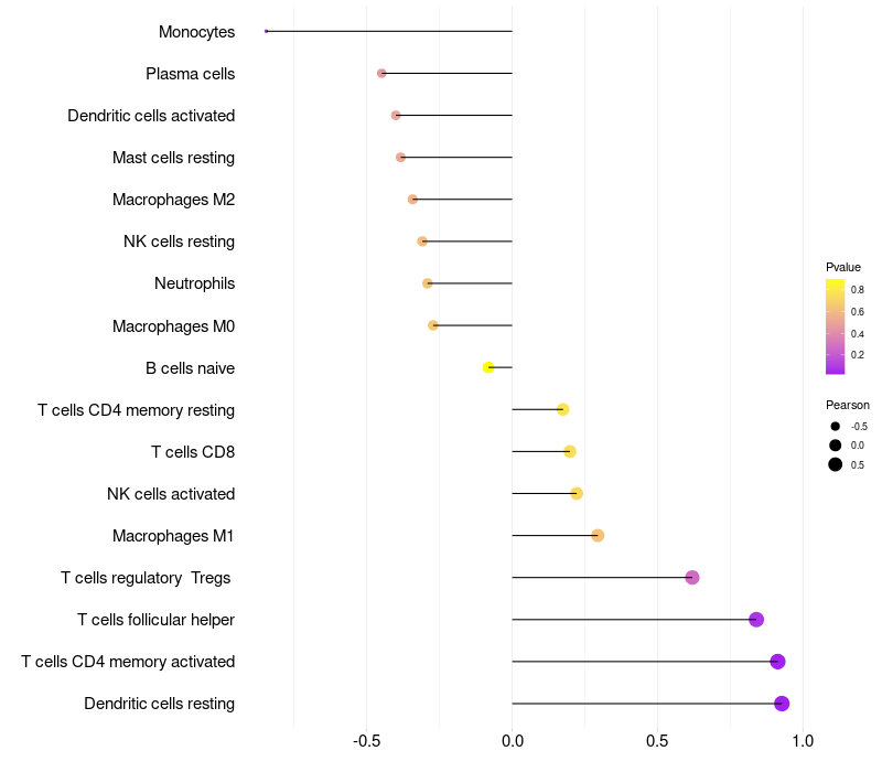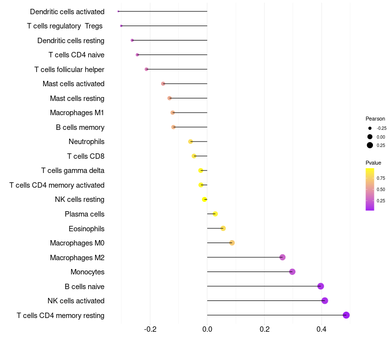 Lollipop of C14orf180 expression and immune infiltrating cell level correlation result in HPV+ samples