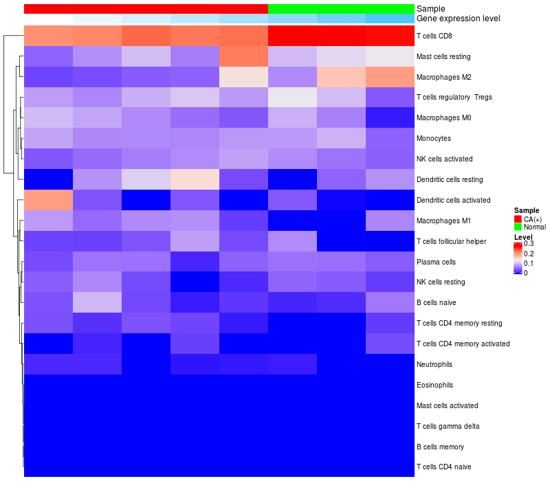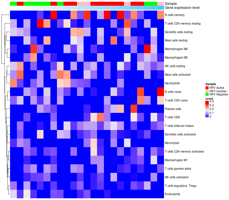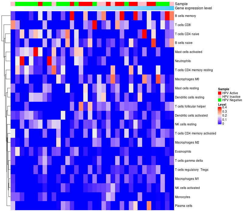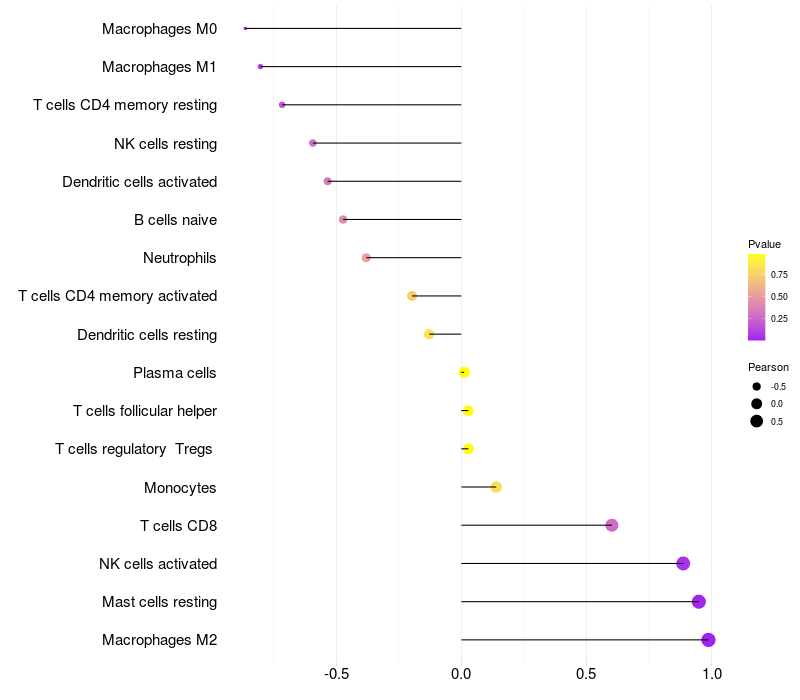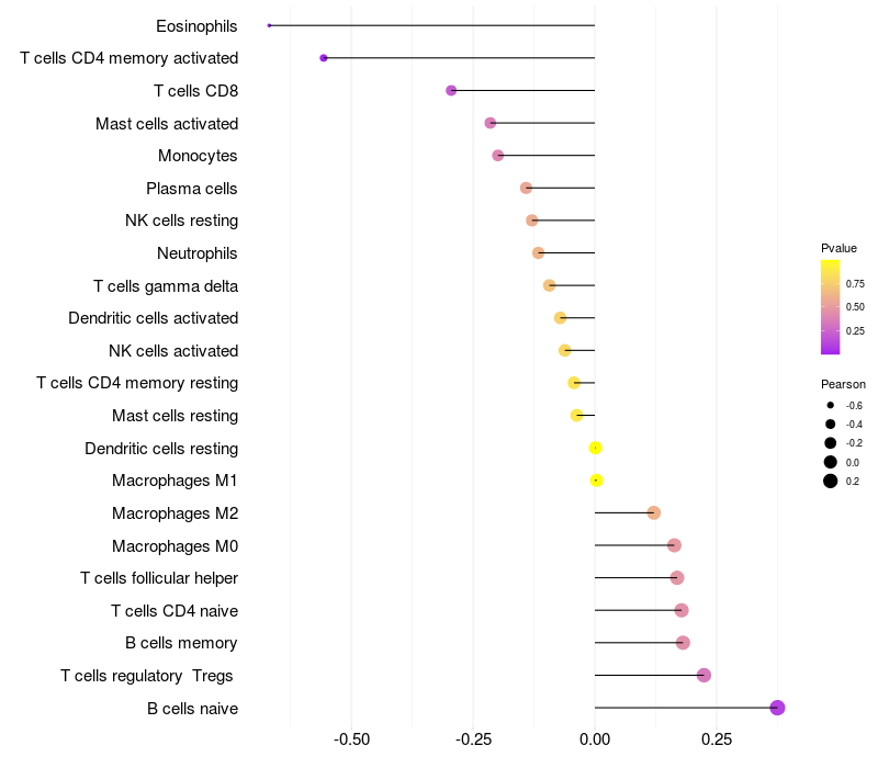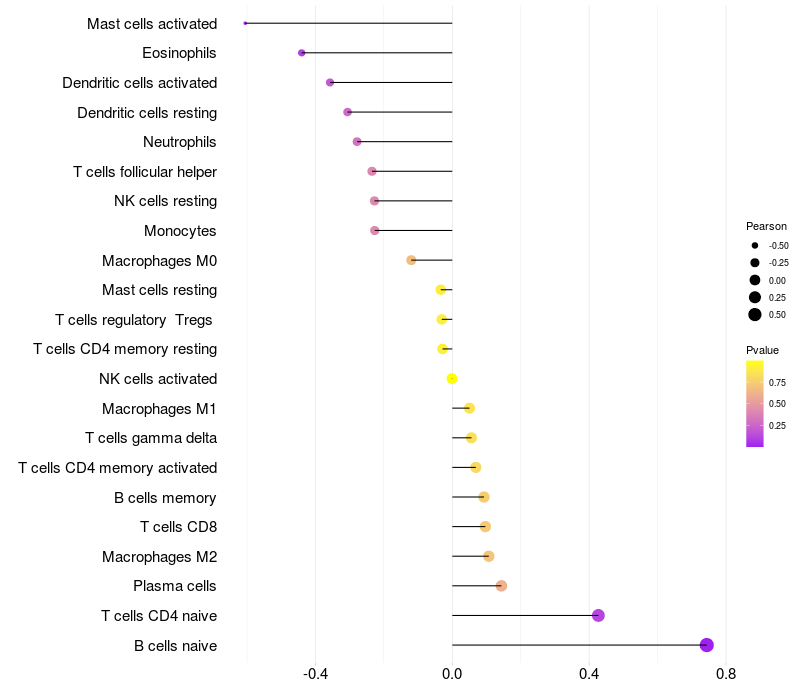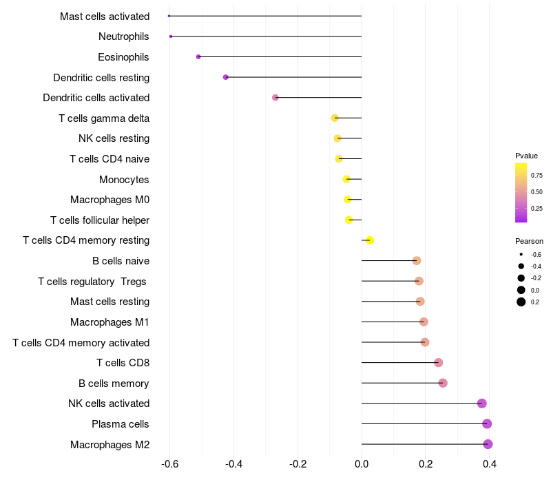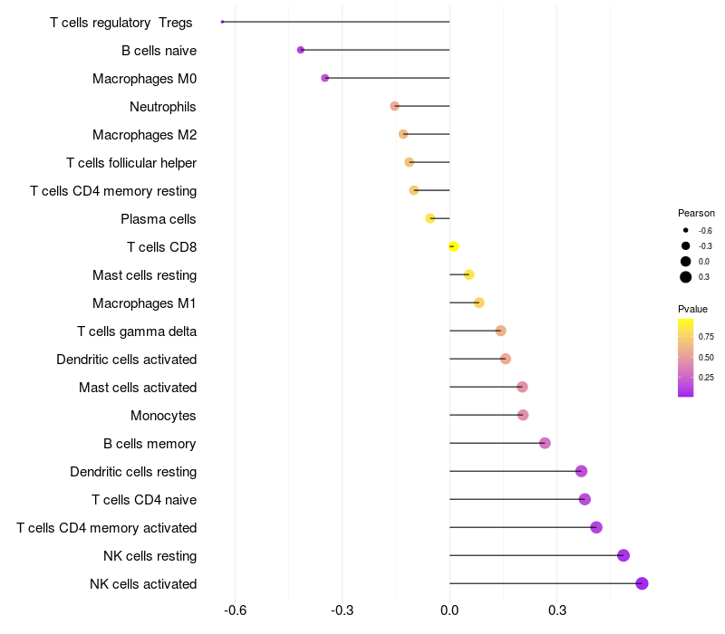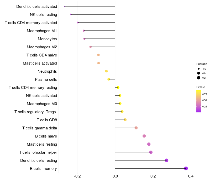 Lollipop of C14orf28 expression and immune infiltrating cell level correlation result in HPV+ samples