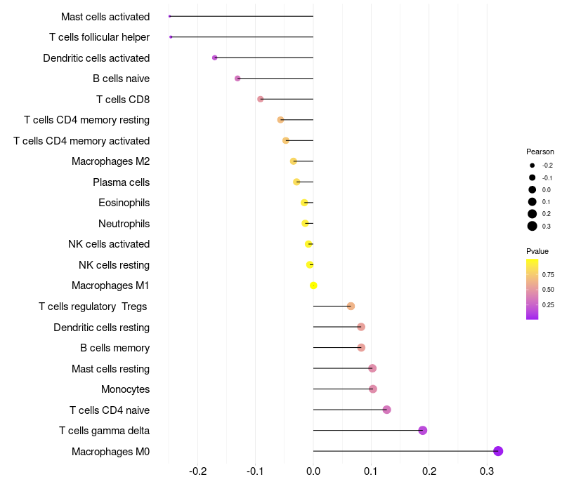 HeatMap of cell type fractions in all samples Lollipop of C16orf95 expression and immune infiltrating cell level correlation result in HPV+ samples