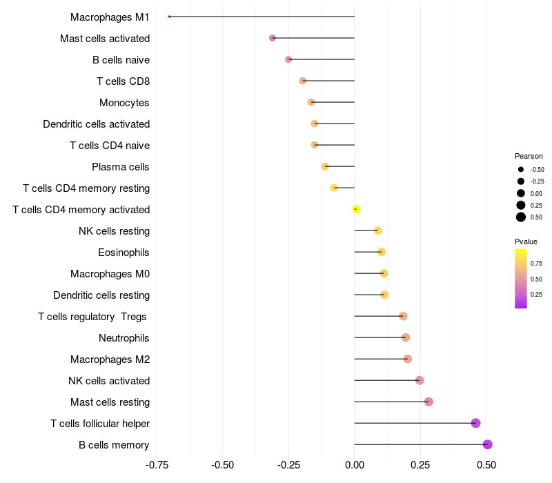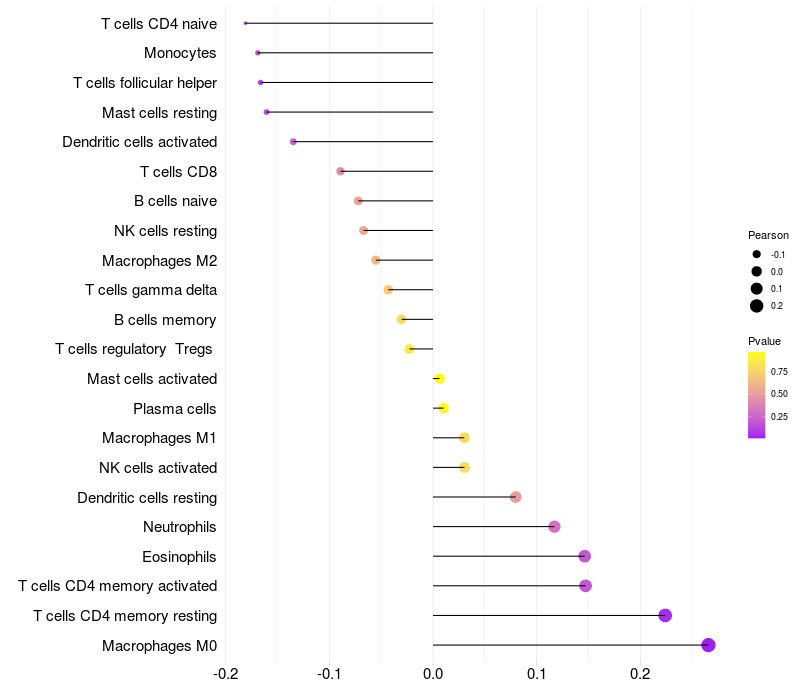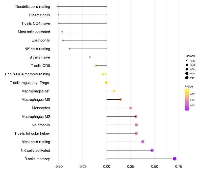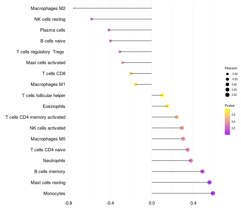 Lollipop of C18orf25 expression and immune infiltrating cell level correlation result in HBV+ Liver cirrhosis samples