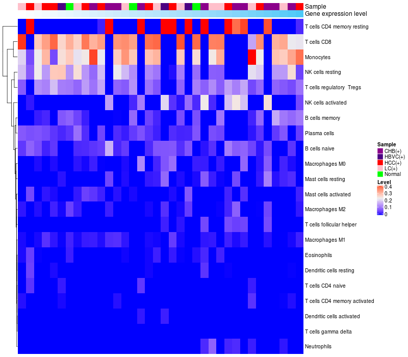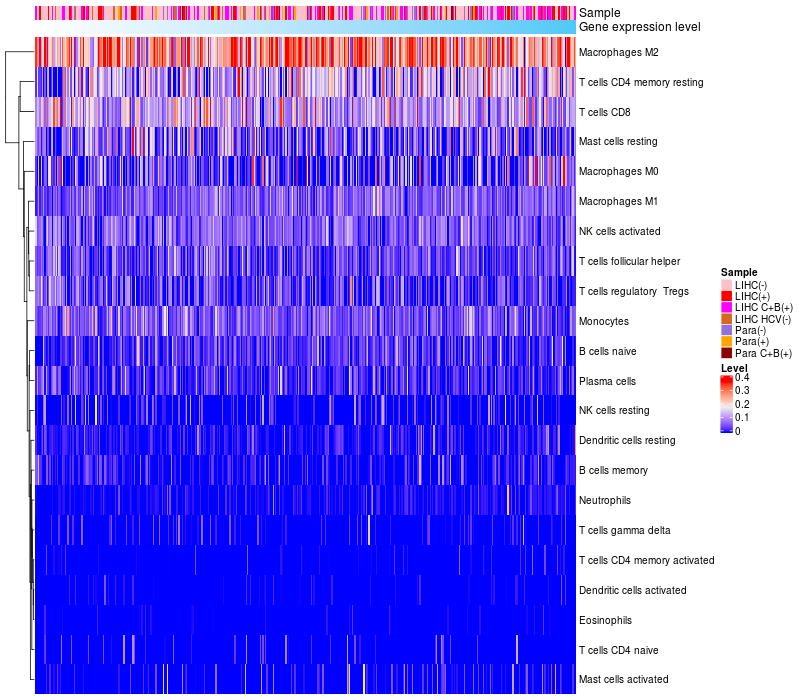 Liver hepatocellular carcinoma HCV (HBV+)(86), Liver hepatocellular carcinoma HCV (HBV-)(19), Liver hepatocellular carcinoma (HBV+)(209), Liver hepatocellular carcinoma (HBV+)(60), Paracancerous HCV (HBV+)(4), Paracancerous (HBV-)(28), Paracancerous (HBV+)(18) |