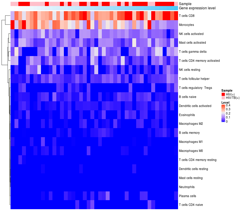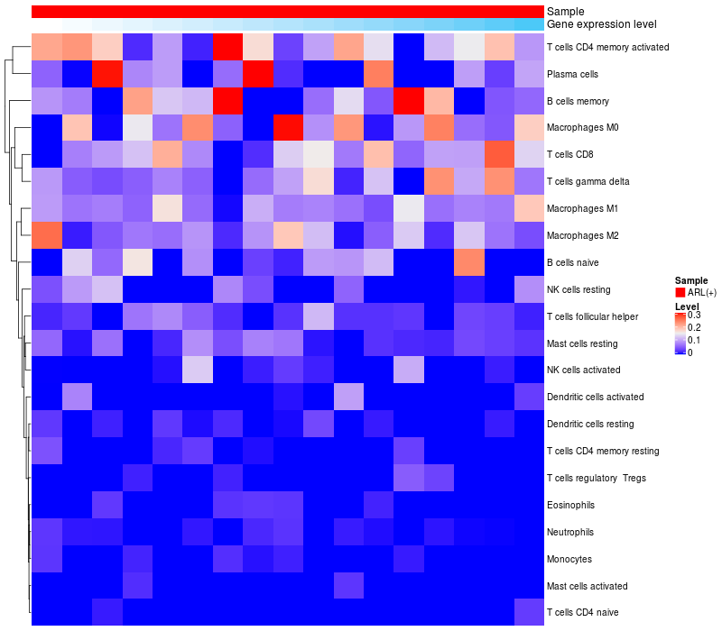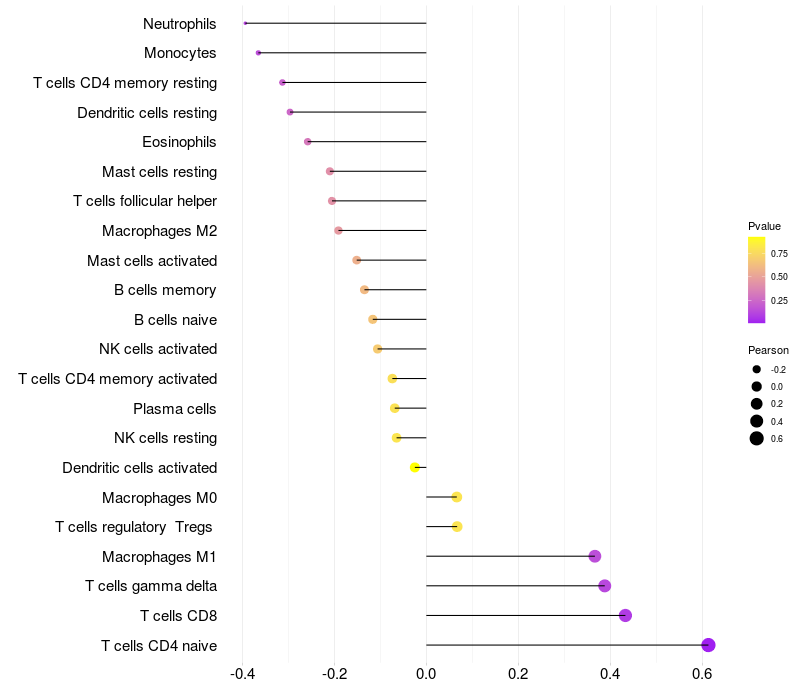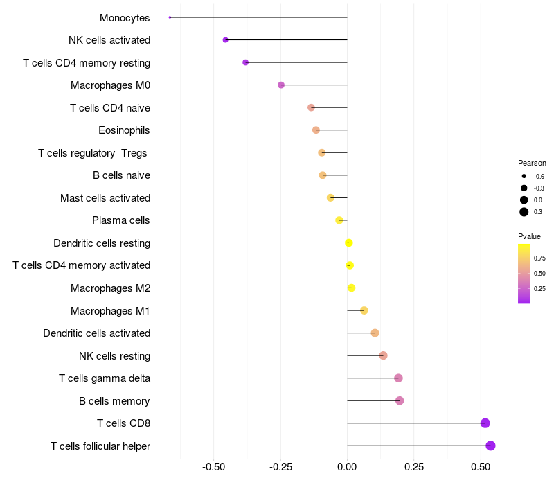 Relationship between gene expression and immune infiltrating cell level