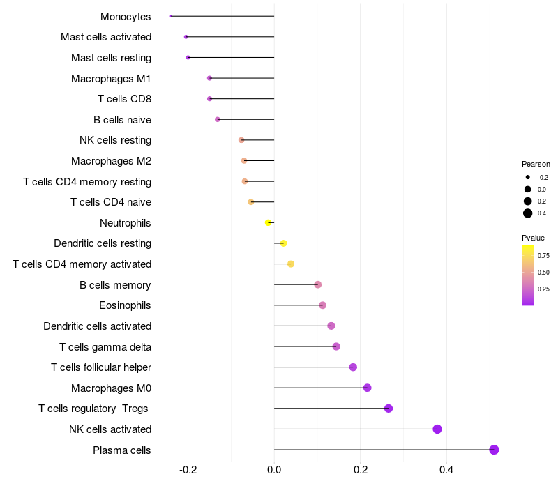 Relationship between gene expression and immune infiltrating cell level