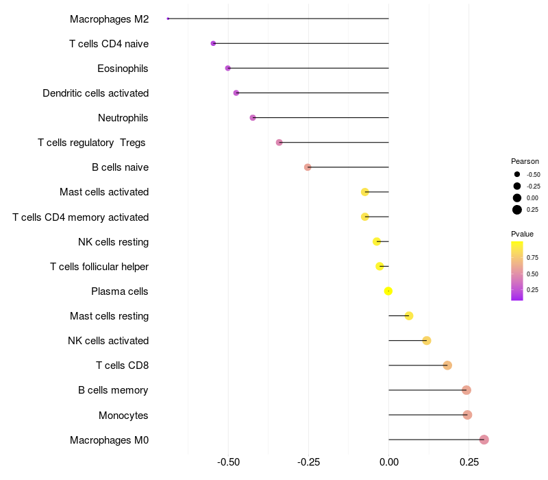 Lollipop of C1orf87 expression and immune infiltrating cell level correlation result in EBV+ samples