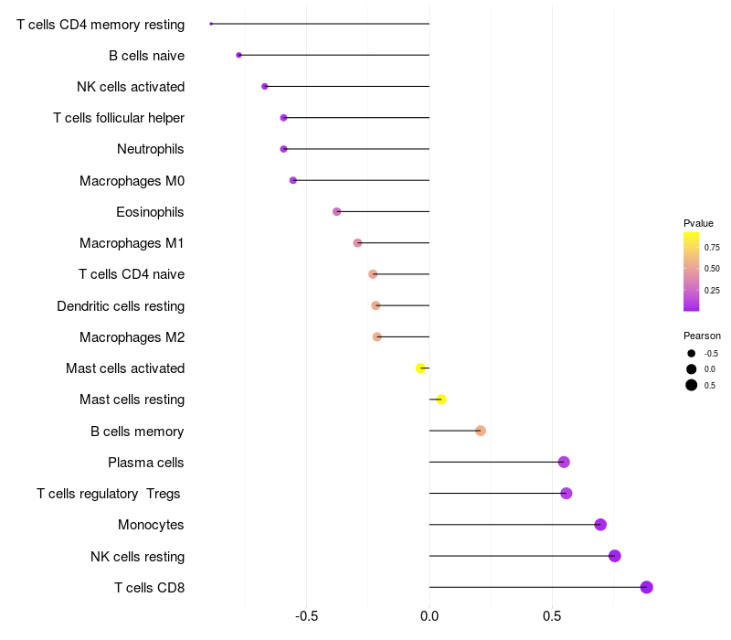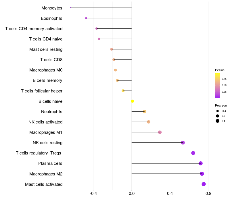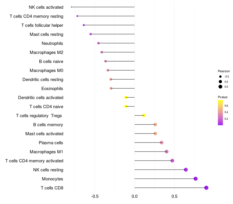 Relationship between gene expression and immune infiltrating cell level