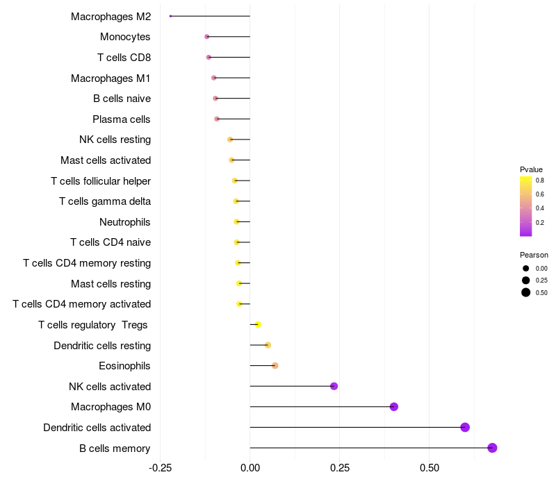 Lollipop of C1orf94 expression and immune infiltrating cell level correlation result in HBV+ Liver cirrhosis samples