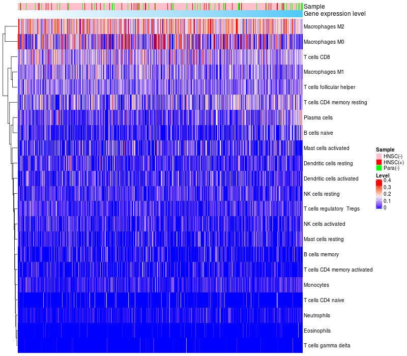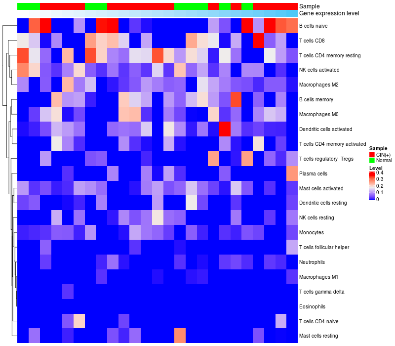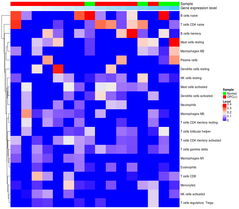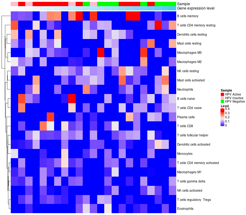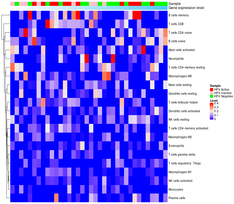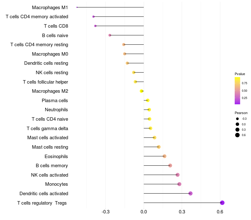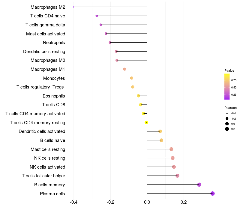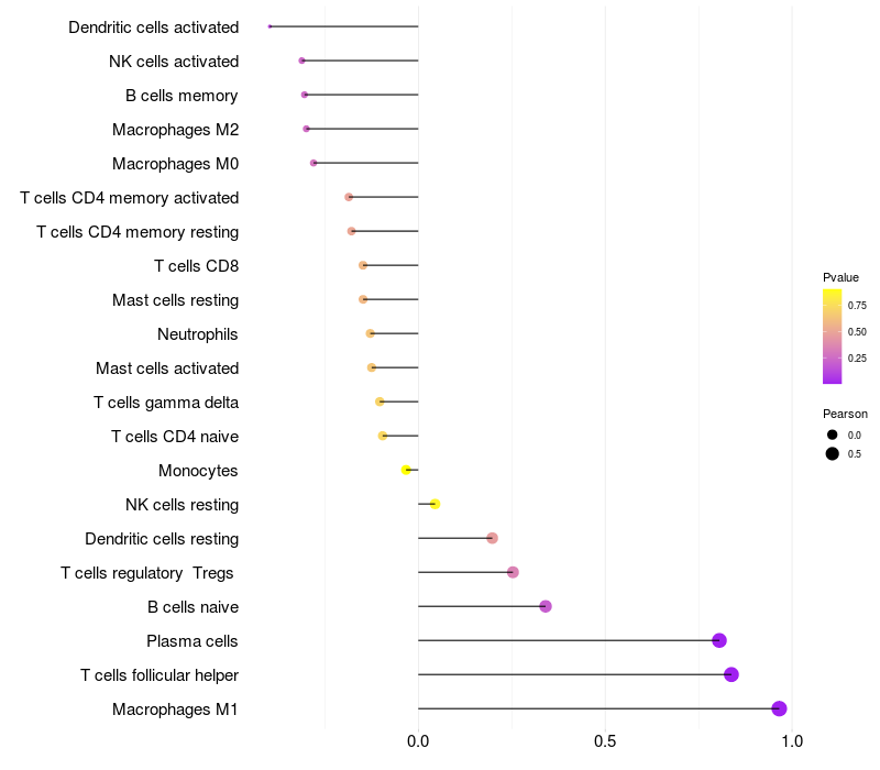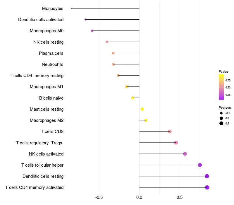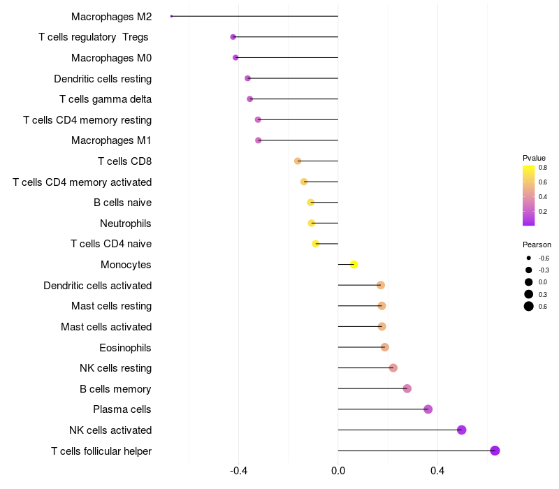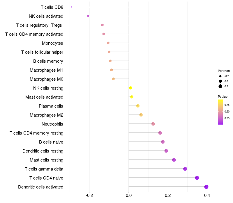 Lollipop of C20orf85 expression and immune infiltrating cell level correlation result in HPV+ samples