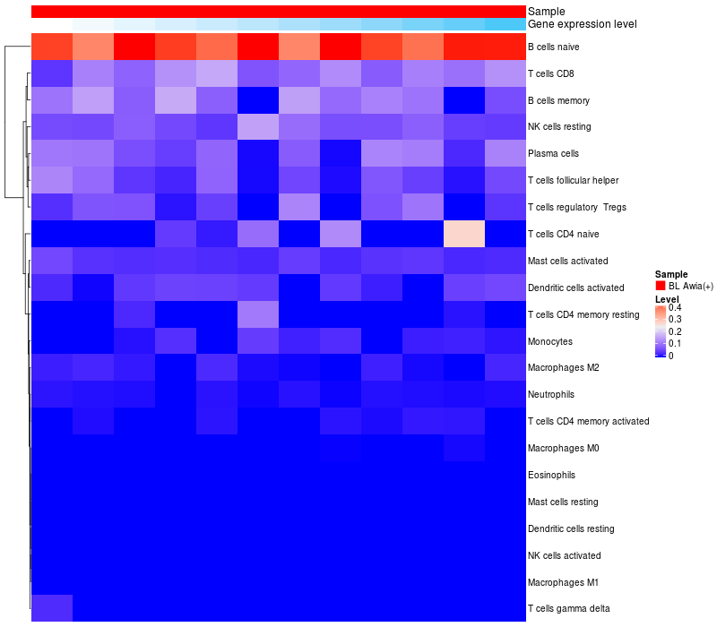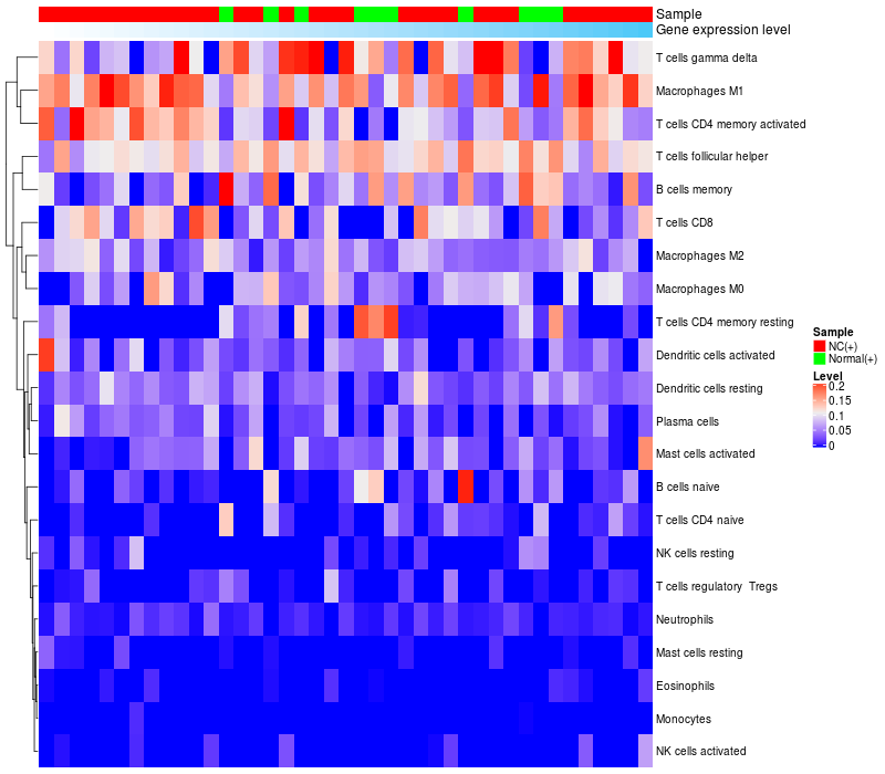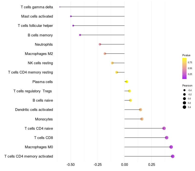 Lollipop of C21orf91-OT1 expression and immune infiltrating cell level correlation result in EBV+ samples