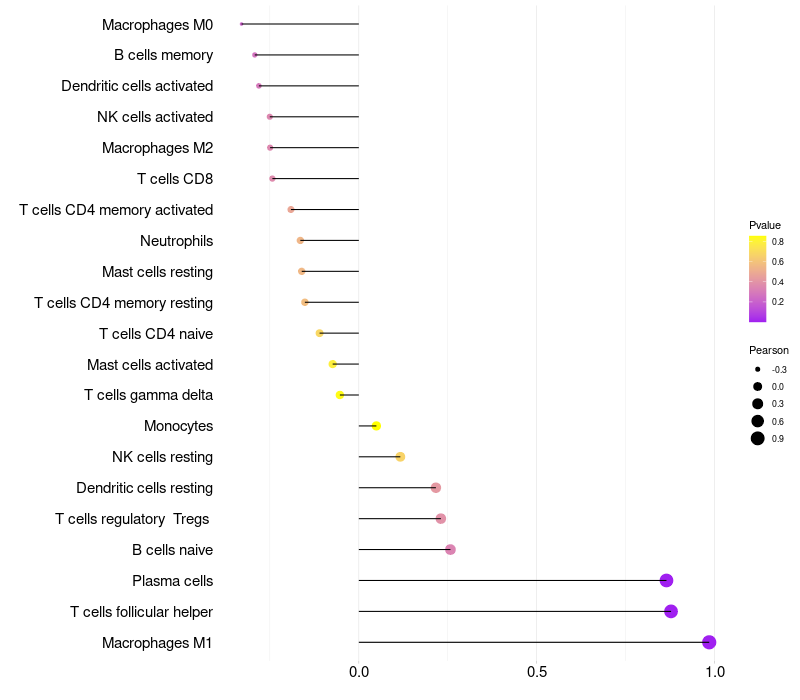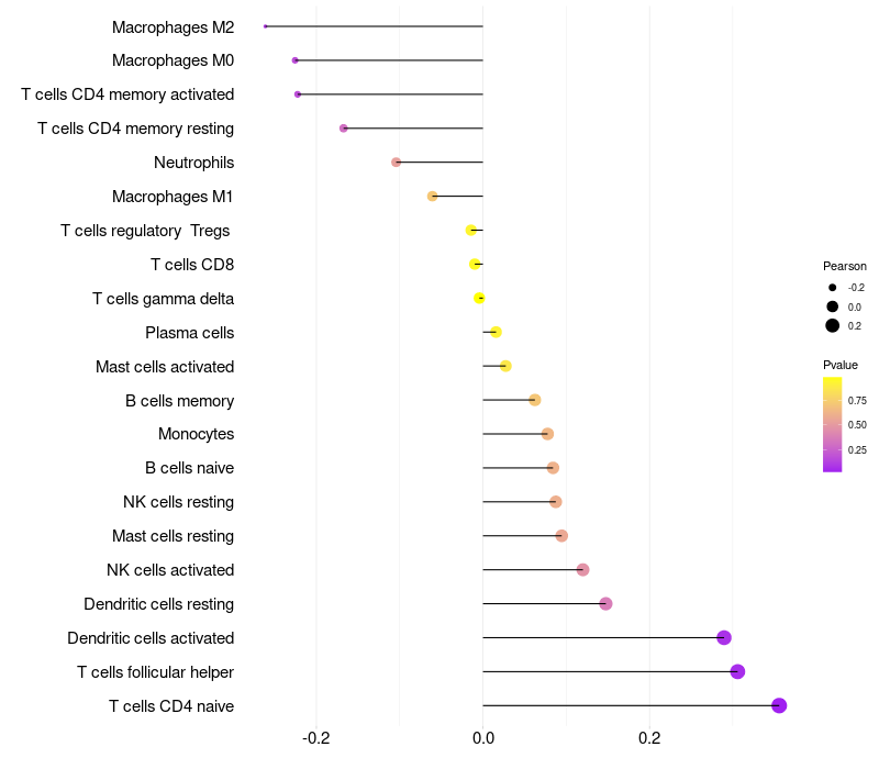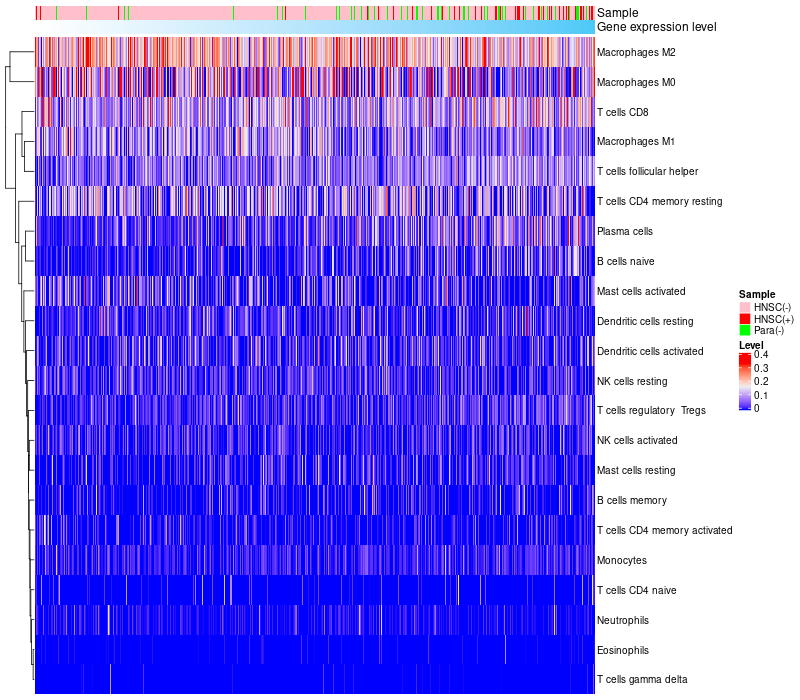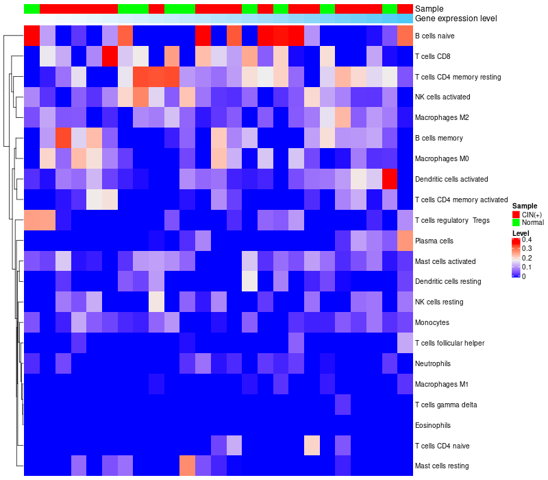 Relationship between gene expression and immune infiltrating cell level