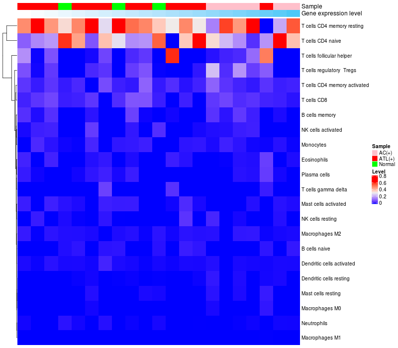 Relationship between gene expression and immune infiltrating cell level