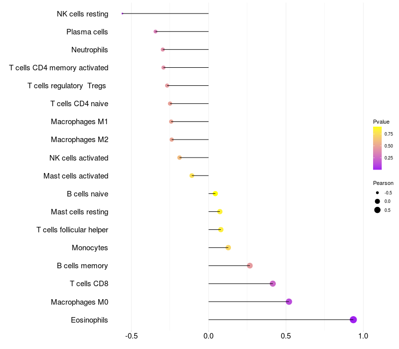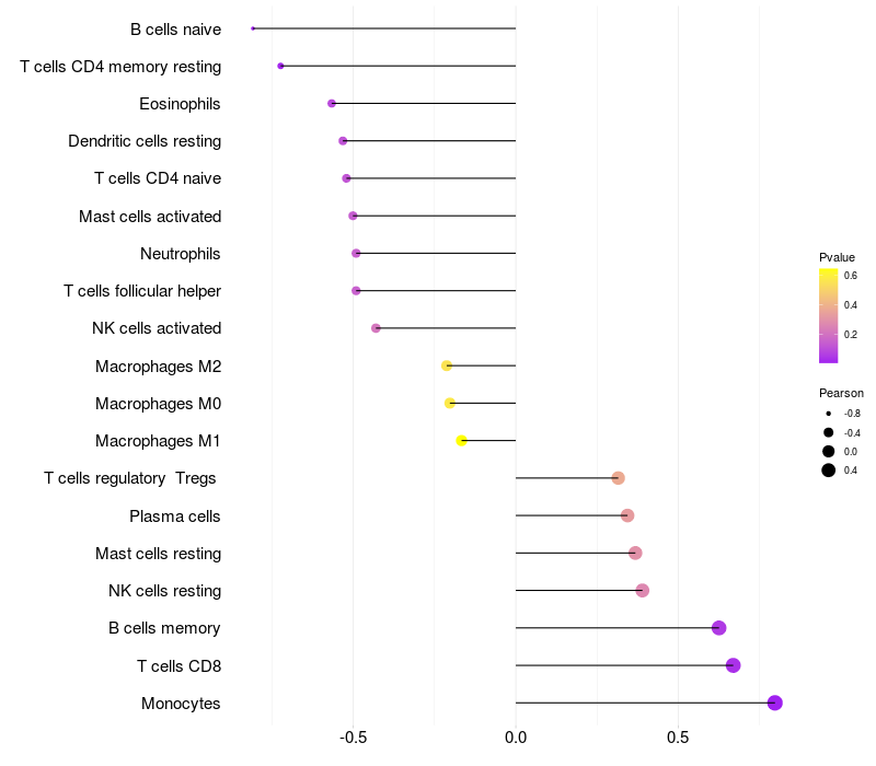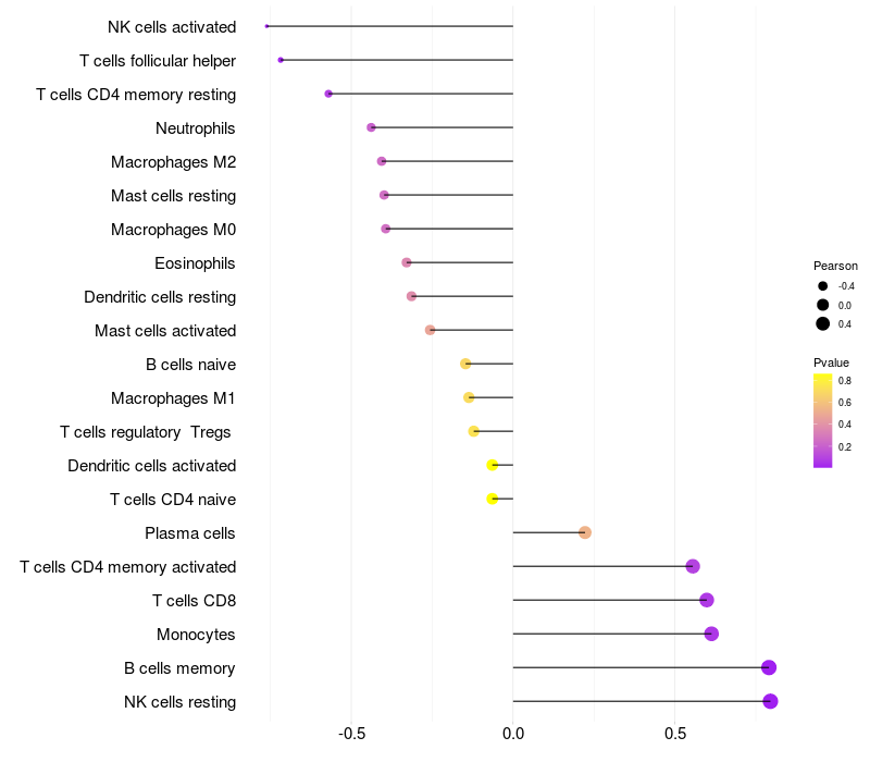 Lollipop of C3 expression and immune infiltrating cell level correlation result in HBV+ Liver cirrhosis samples