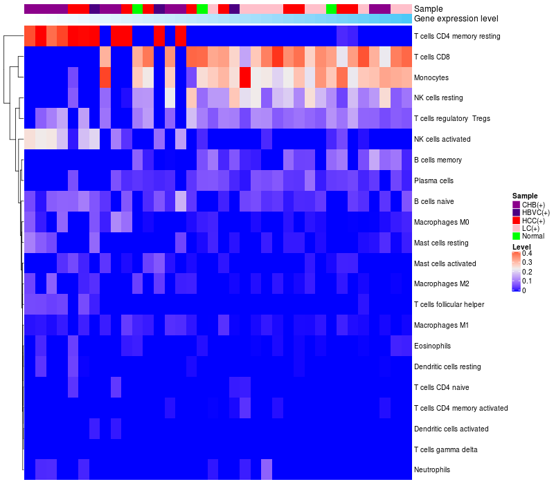 Liver hepatocellular carcinoma HCV (HBV+)(86), Liver hepatocellular carcinoma HCV (HBV-)(19), Liver hepatocellular carcinoma (HBV+)(209), Liver hepatocellular carcinoma (HBV+)(60), Paracancerous HCV (HBV+)(4), Paracancerous (HBV-)(28), Paracancerous (HBV+)(18) |