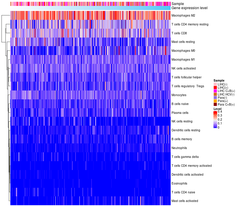Relationship between gene expression and immune infiltrating cell level