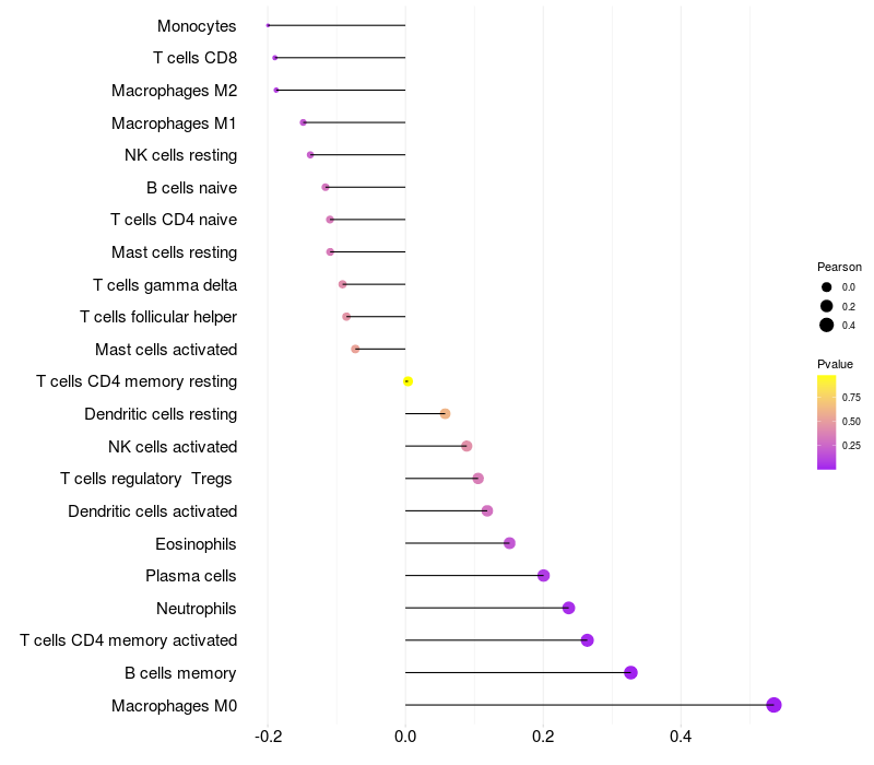 Lollipop of C3orf52 expression and immune infiltrating cell level correlation result in HBV+ Liver cirrhosis samples