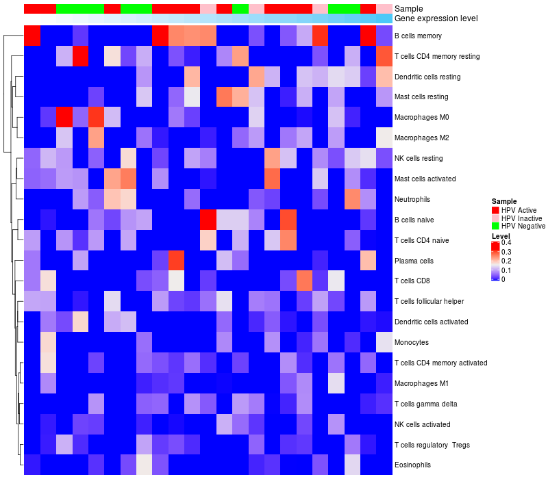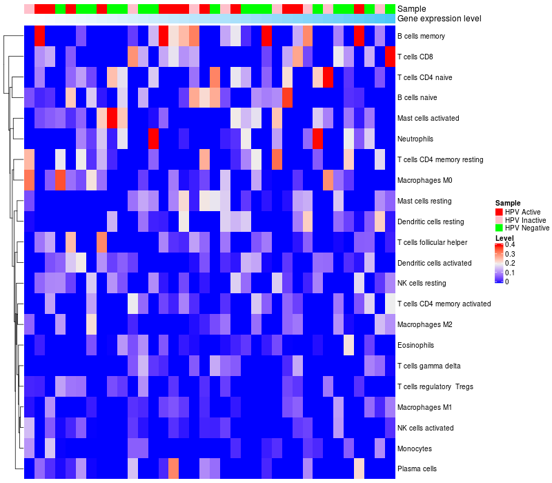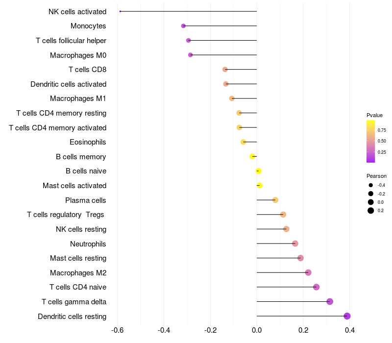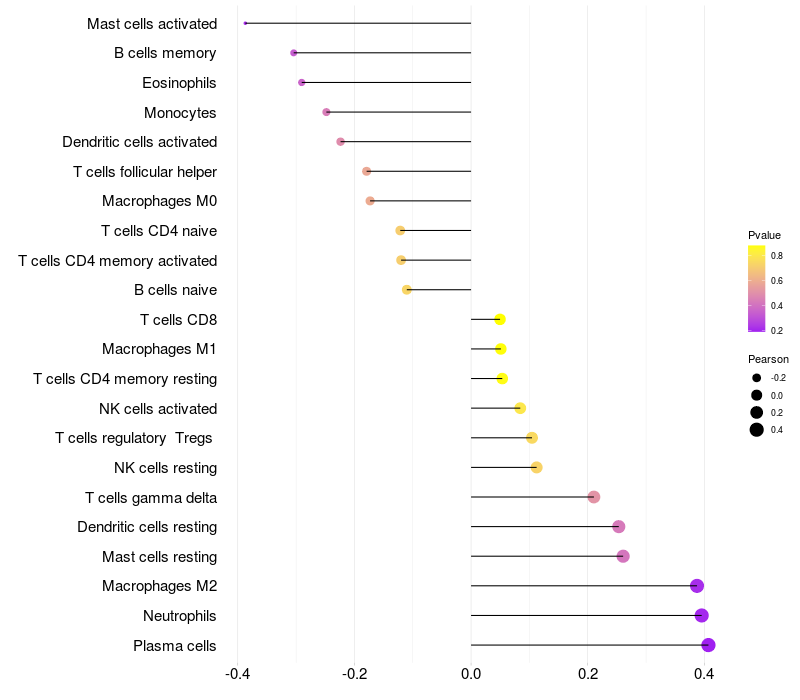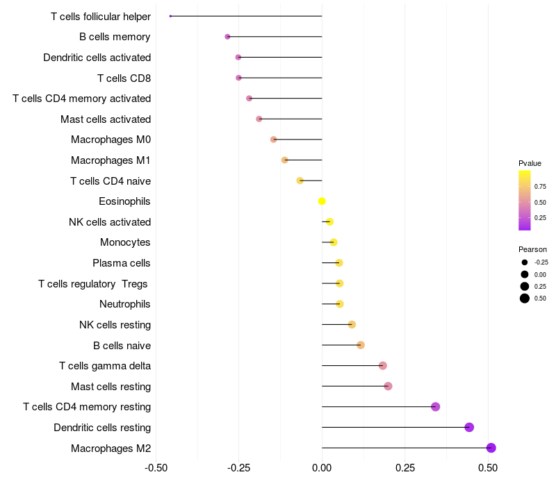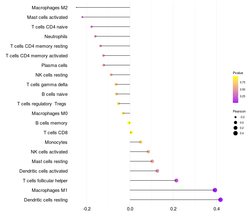 Lollipop of C4orf33 expression and immune infiltrating cell level correlation result in HPV+ samples