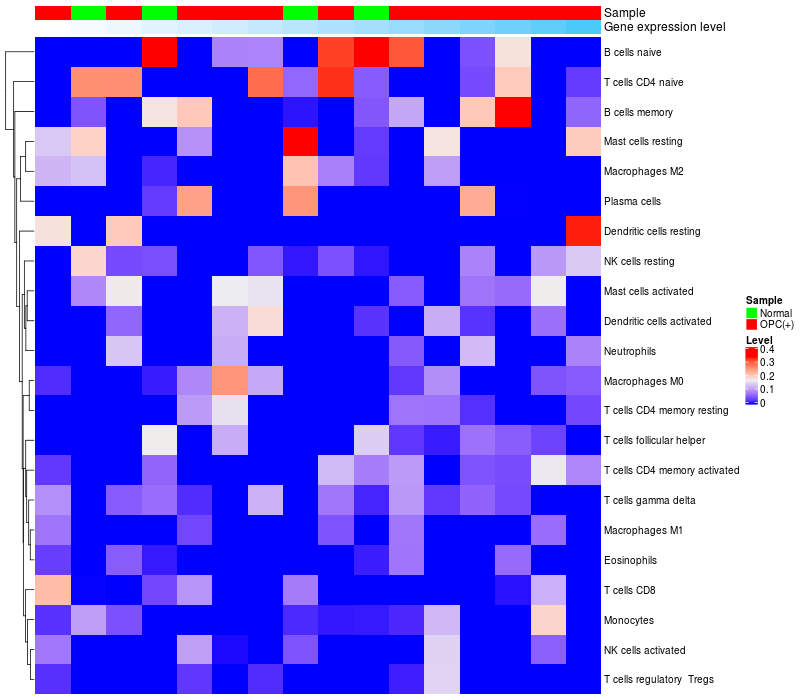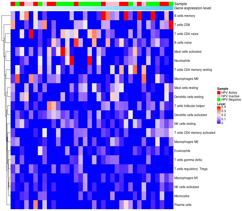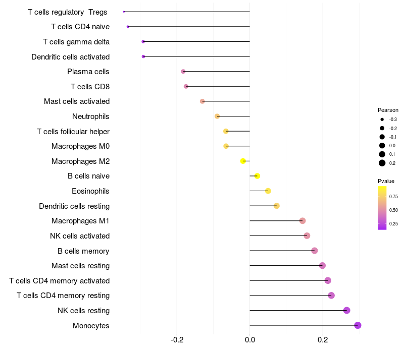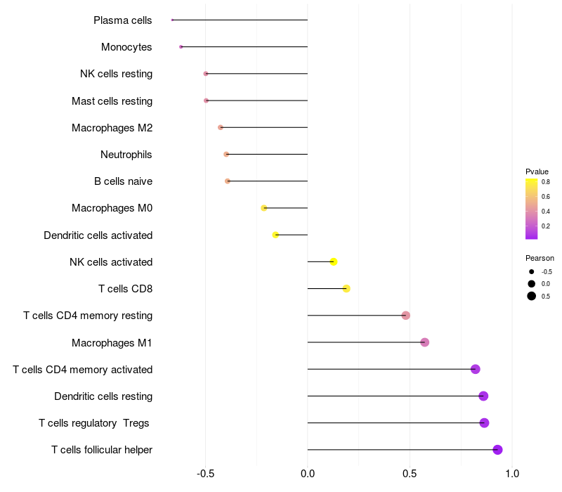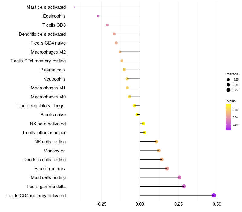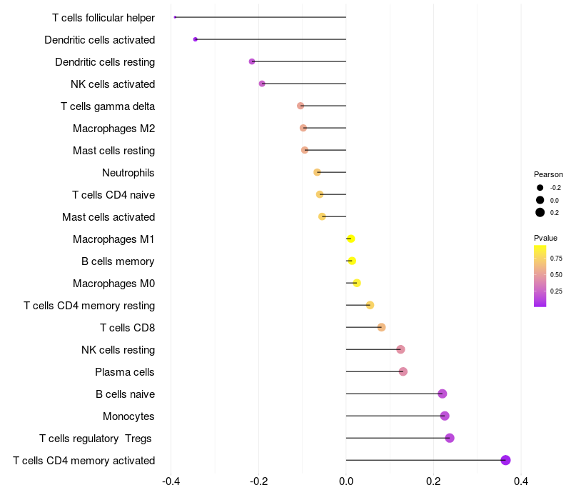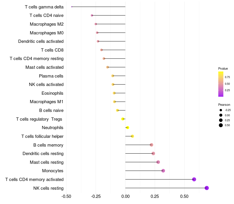 Lollipop of C4orf50 expression and immune infiltrating cell level correlation result in HPV+ samples