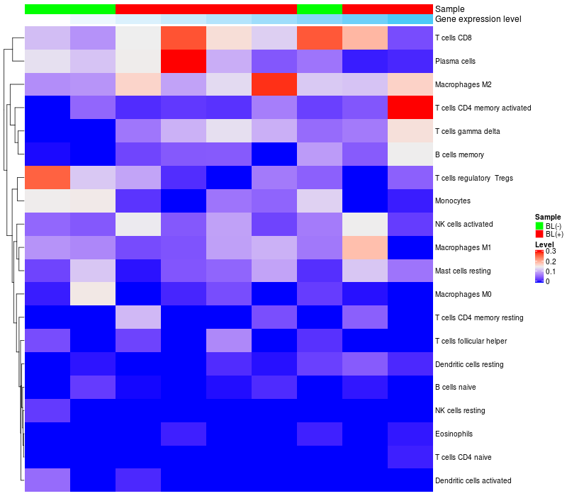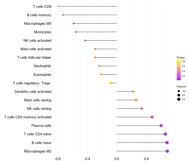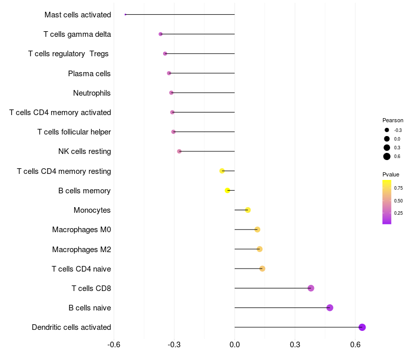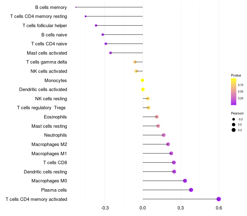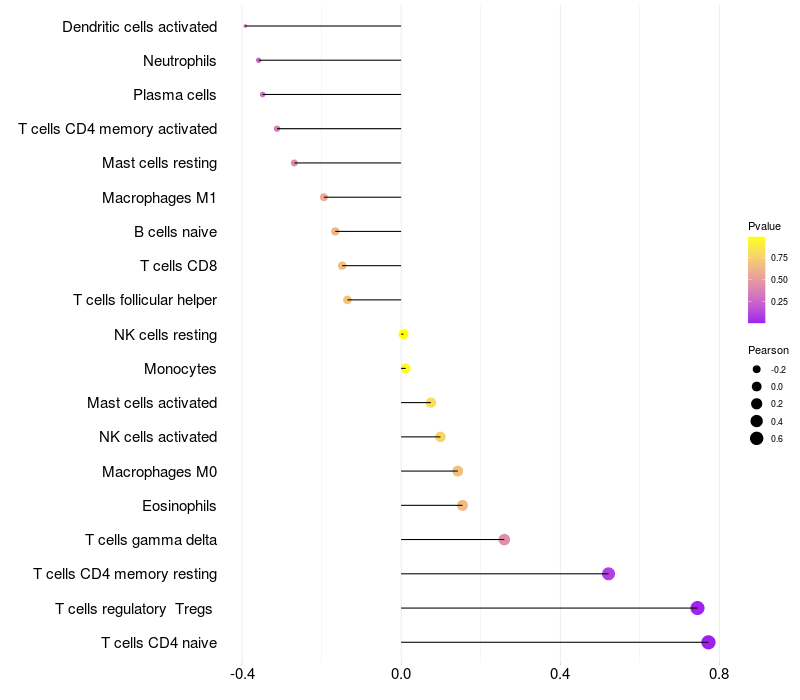 Lollipop of C5orf34 expression and immune infiltrating cell level correlation result in EBV+ samples