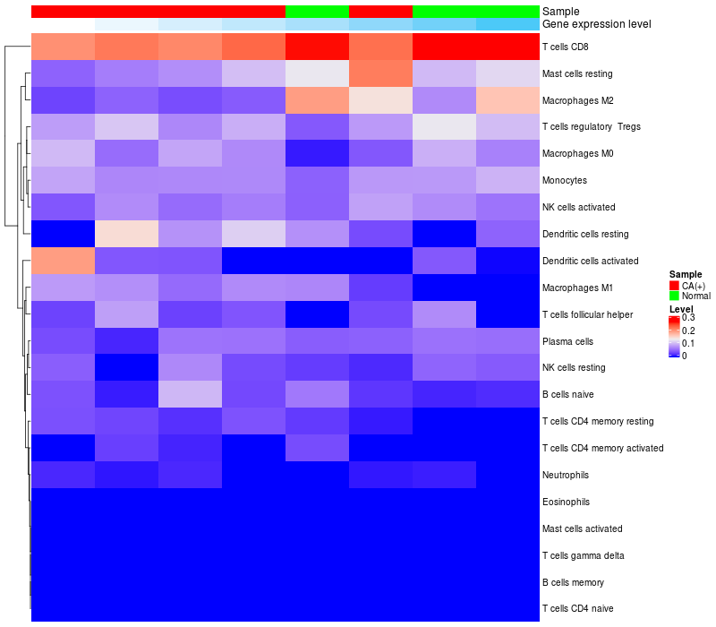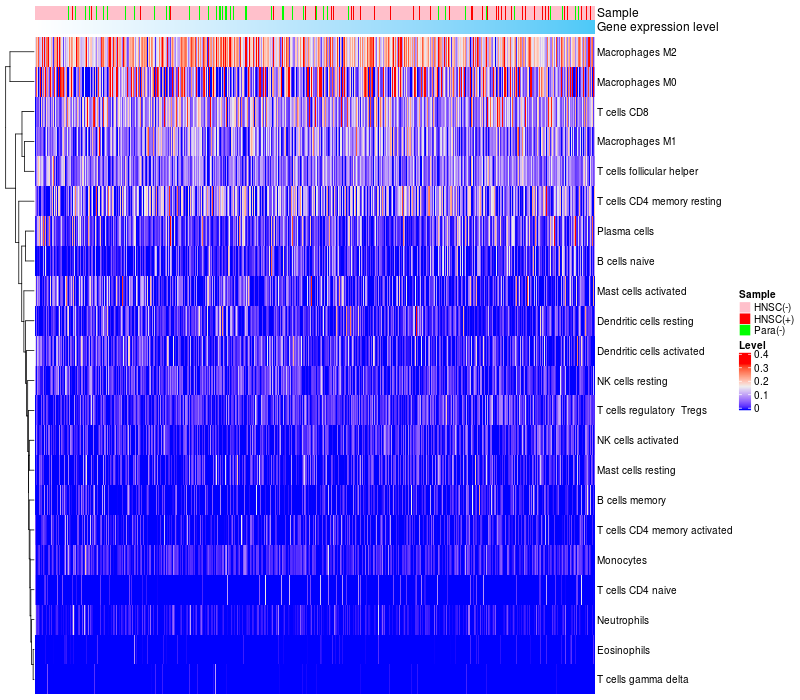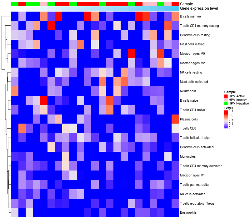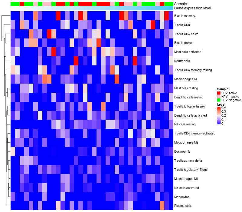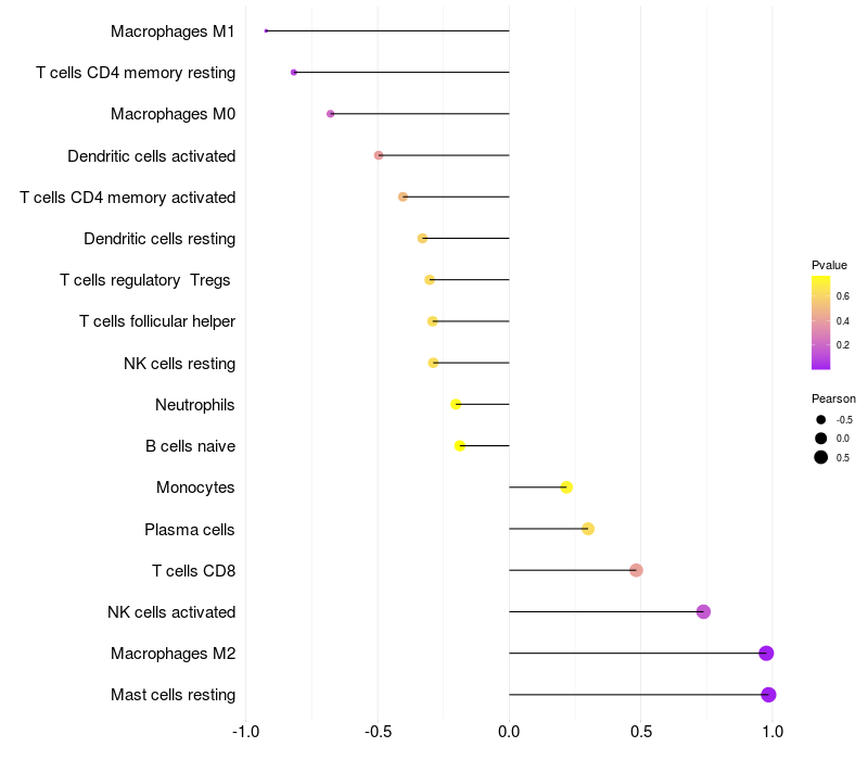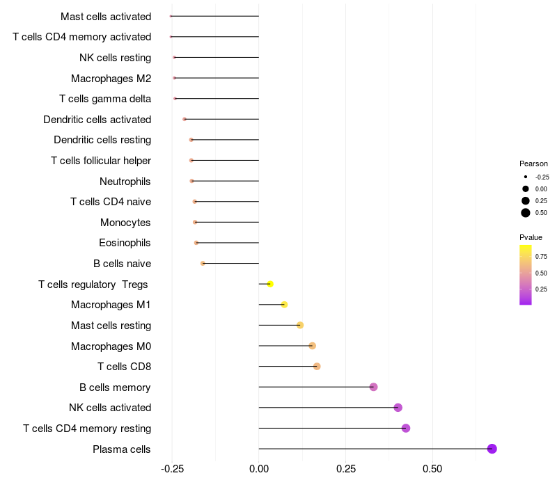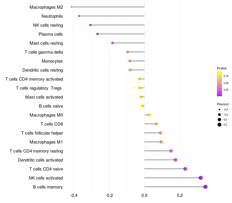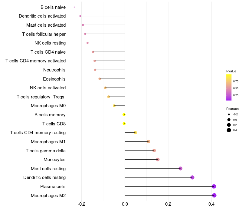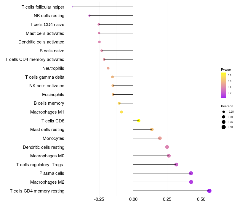 Lollipop of C7orf31 expression and immune infiltrating cell level correlation result in HPV+ samples