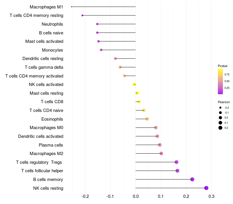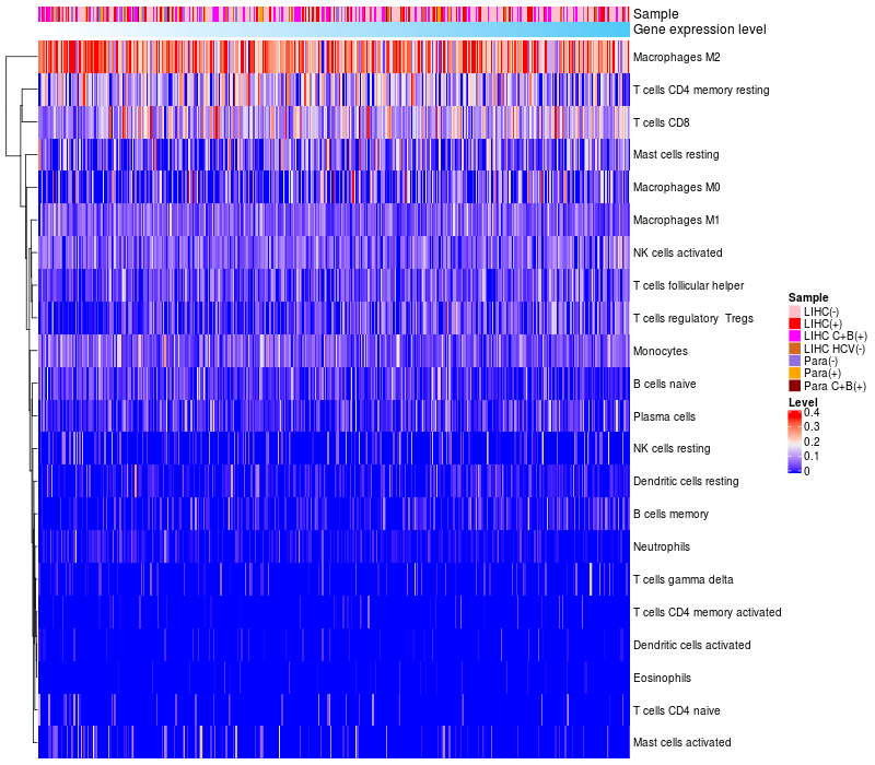 Relationship between gene expression and immune infiltrating cell level